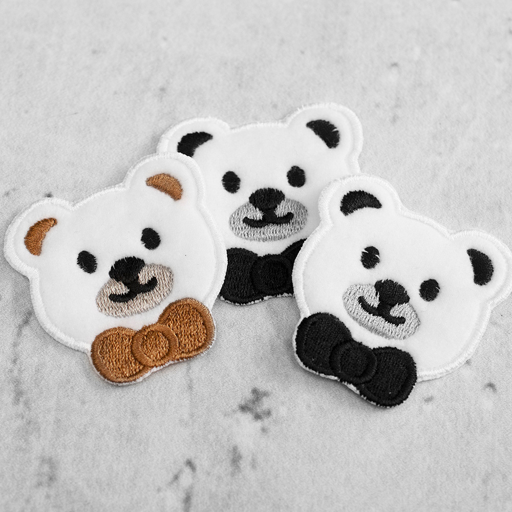 Termoprzylepna aplikacja w kształcie misia. Doskonale sprawdza się jako ozdoba odzieży i akcesoriów, nadając im indywidualny, niepowtarzalny charakter.