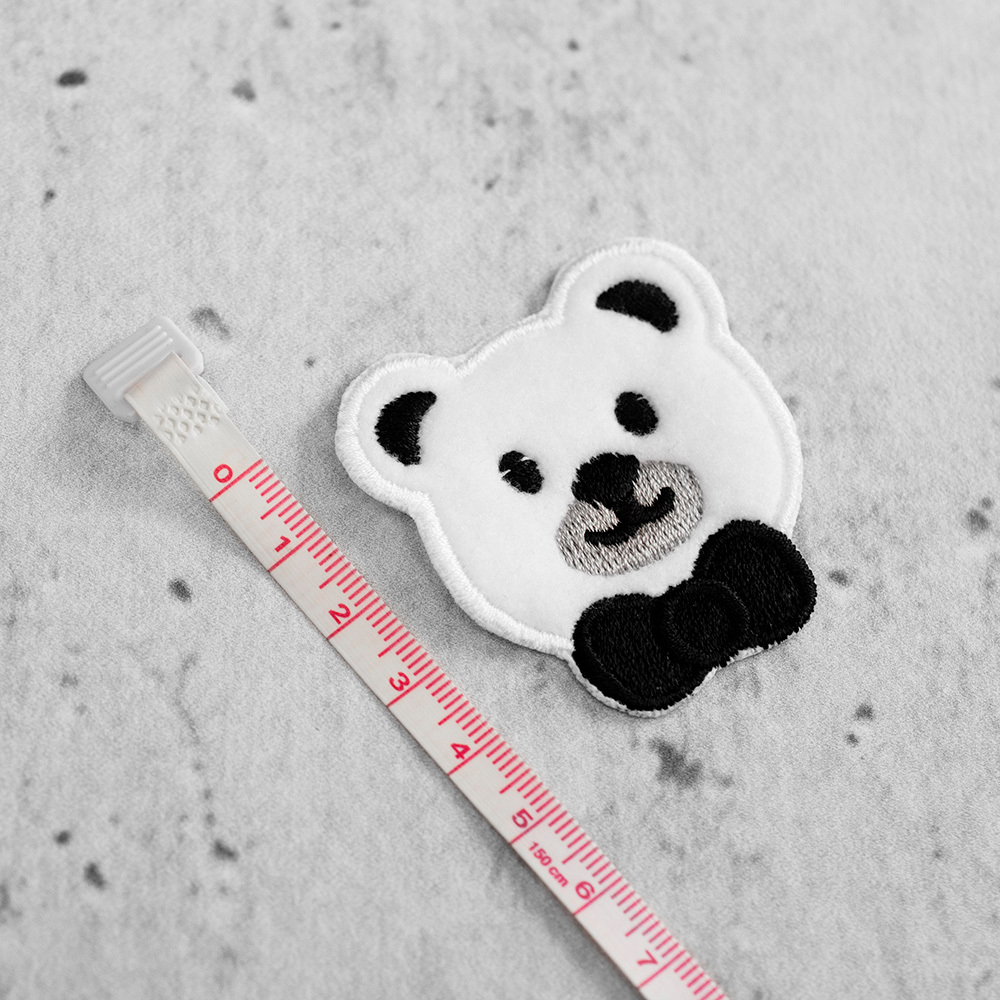 Termoprzylepna aplikacja w kształcie misia.