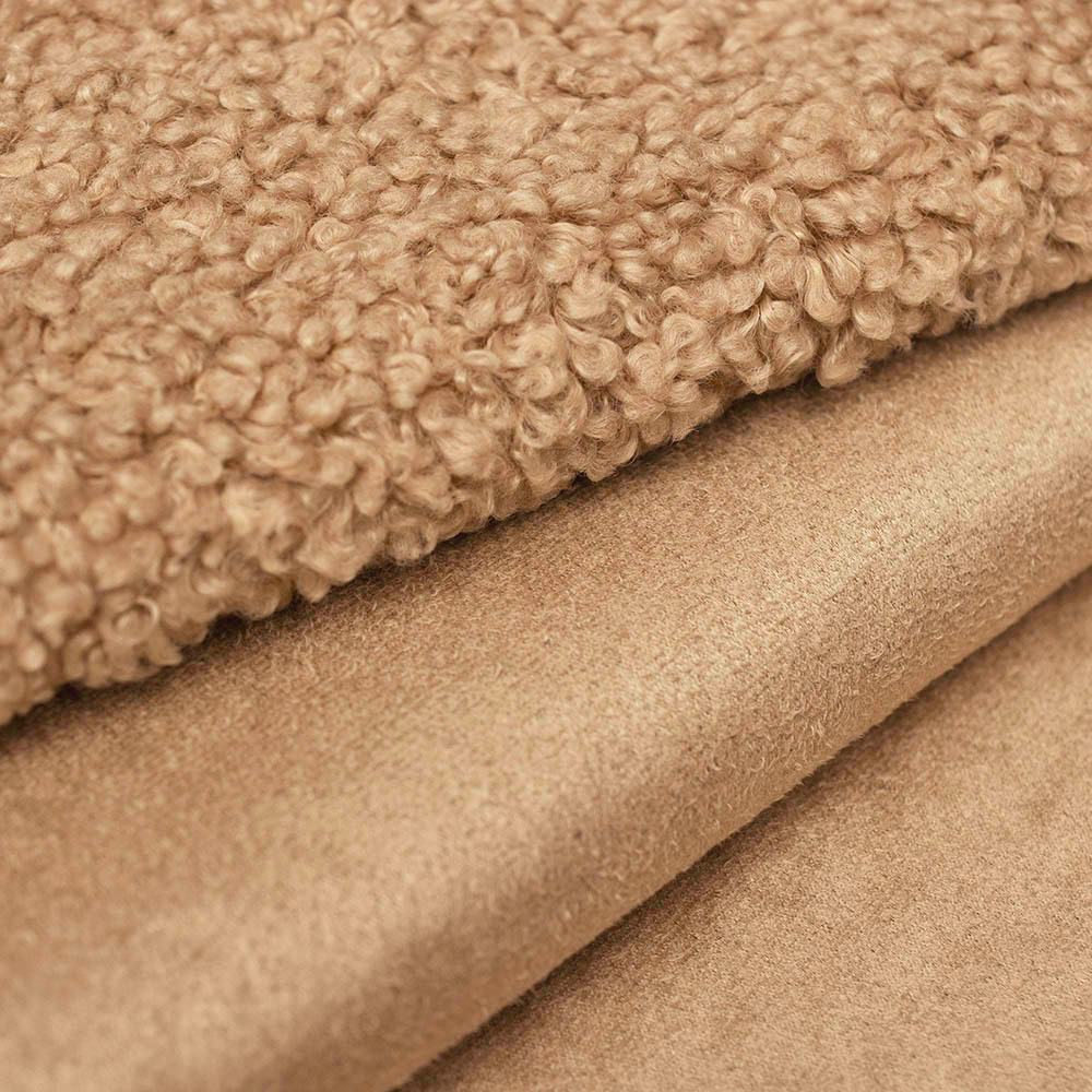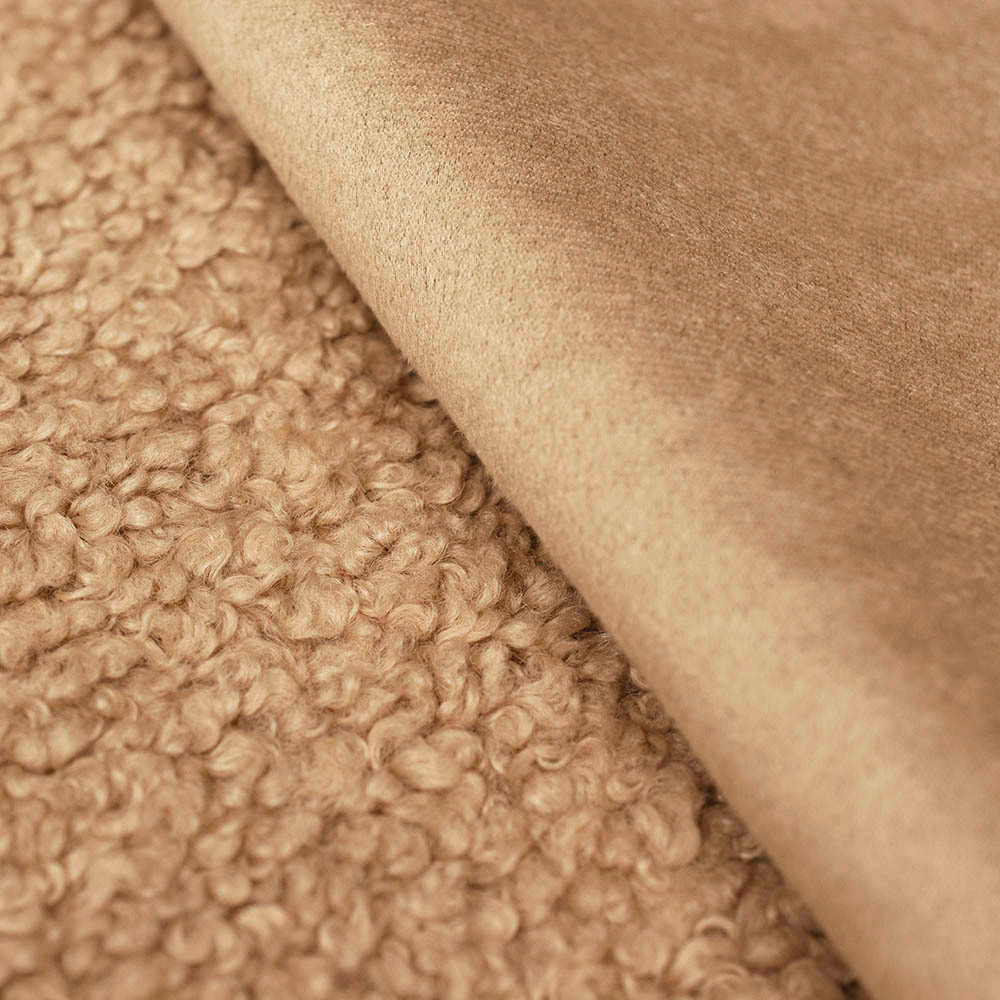 Dzianina płaszczowa Bucle Zamsz to dwustronny materiał idealny na sezon jesienno-zimowy, który z jednej strony wykończony jest miękkim barankiem, a z drugiej eleganckim zamszem.