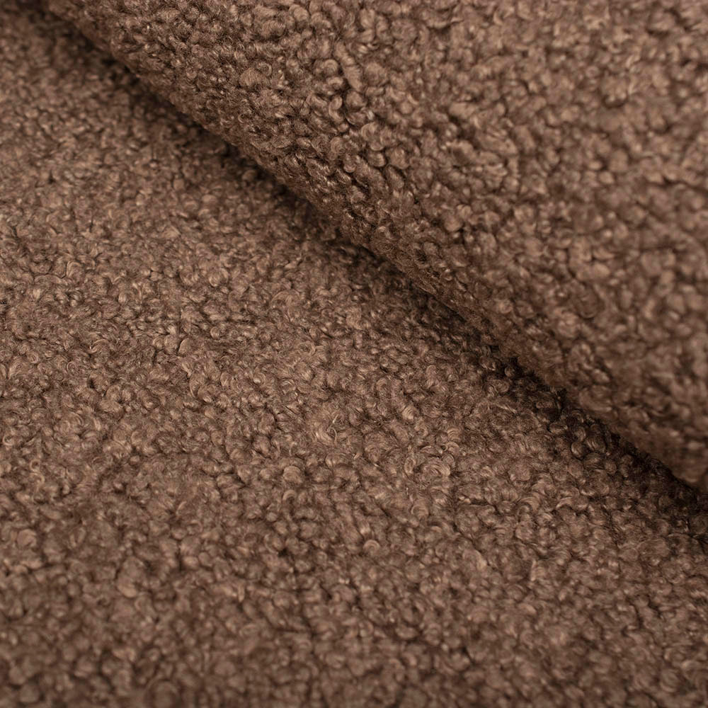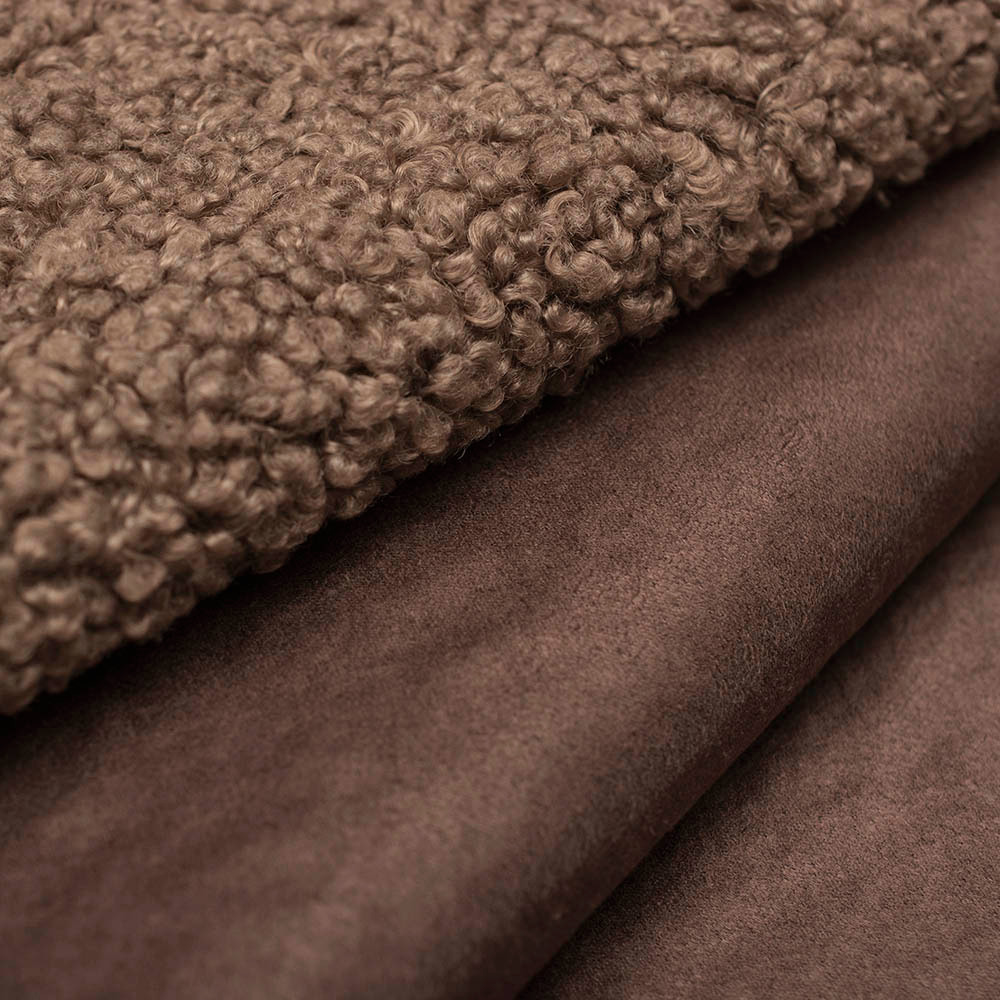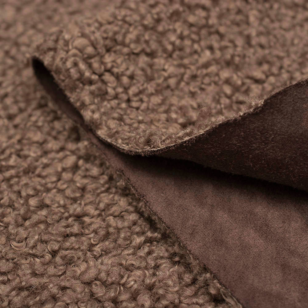Dzianina płaszczowa Bucle Zamsz to dwustronny materiał idealny na sezon jesienno-zimowy, który z jednej strony wykończony jest miękkim barankiem, a z drugiej eleganckim zamszem.