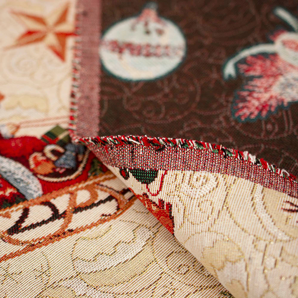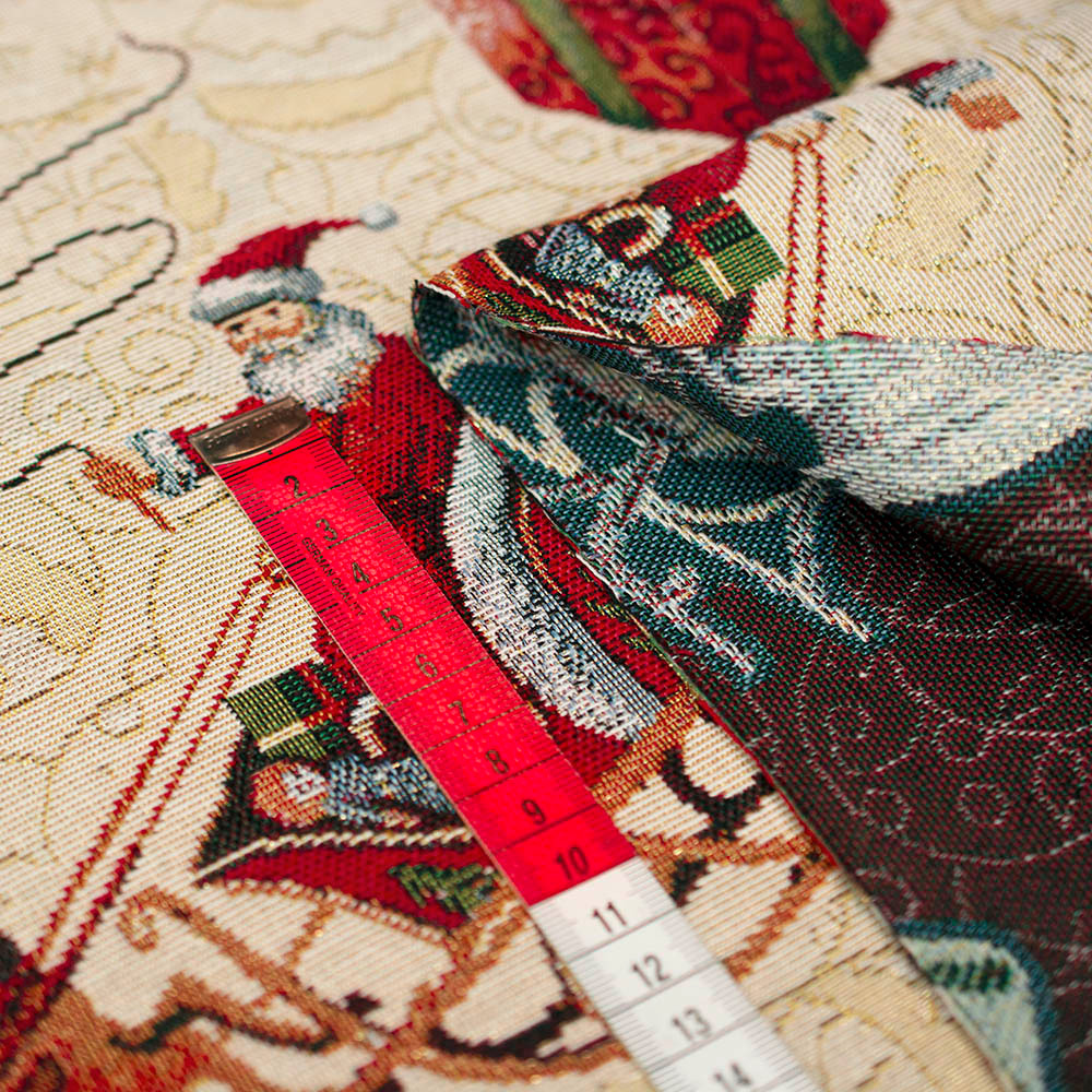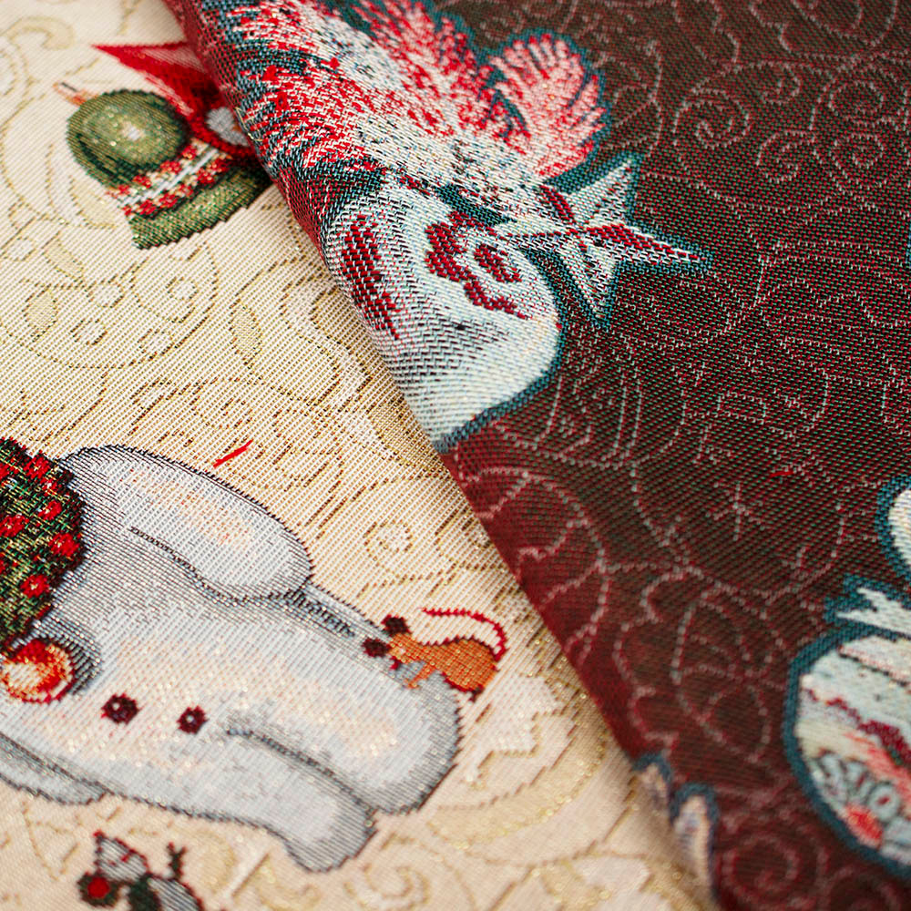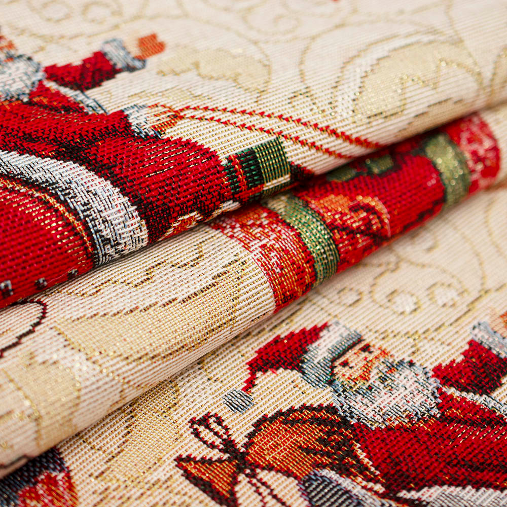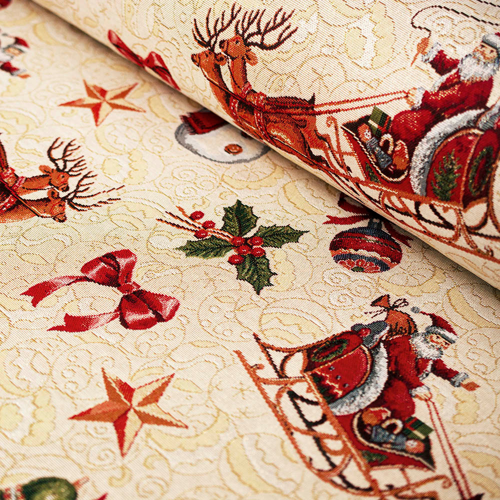 Dekoracyjna tkanina o świątecznym wzorze to świetny wybór do zimowych aranżacji wnętrz. Wykonana techniką żakardową, ma mocny splot i miękką, przyjemną w dotyku powierzchnię dzięki użyciu przędzy szenilowej, która jest pokryta drobnymi włoskami. Tkanina wygląda elegancko, a jednocześnie jest trwała i odporna na codzienne użytkowanie. Doskonale sprawdzi się jako materiał na poduszki, obrusy, bieżniki, a także jako obicie mebli, wprowadzając do domu ciepły, uroczysty klimat.