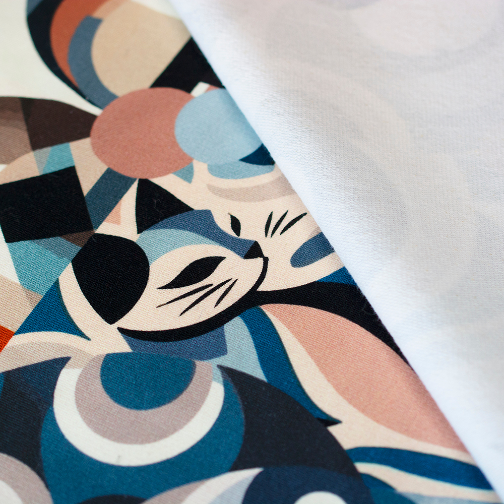 Dzianinę dodatkowo zdobi bardzo modny wzór wykonany za pomocą druku cyfrowego. Ta metoda pozwala na uzyskanie wielokolorowych deseni o trwałych i nasyconych barwach. Druk nie jest wyczuwalny w dotyku oraz nie wpływa na miękkość dzianiny.