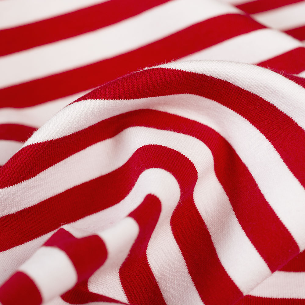 Bawełniana dzianina dresowa o spodzie pętelkowym w bardzo modnym w tym sezonie wzorze w paski.