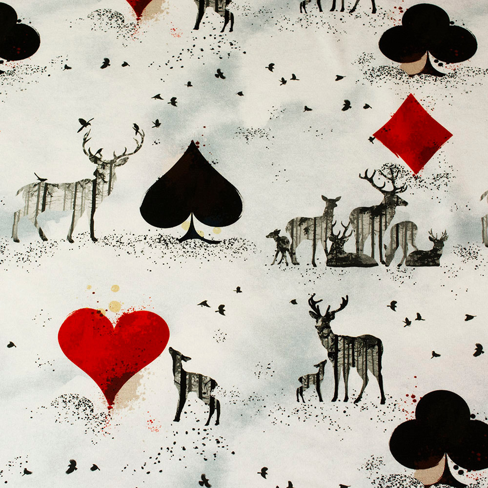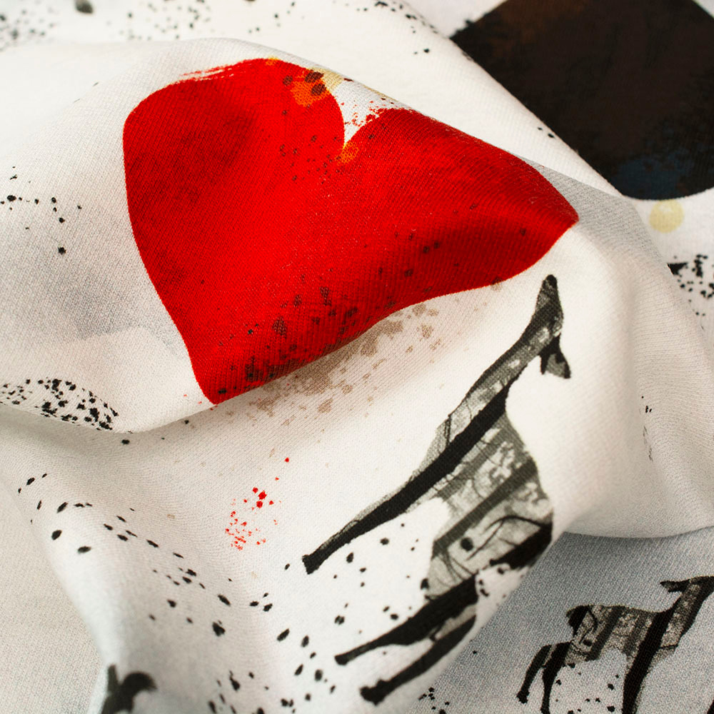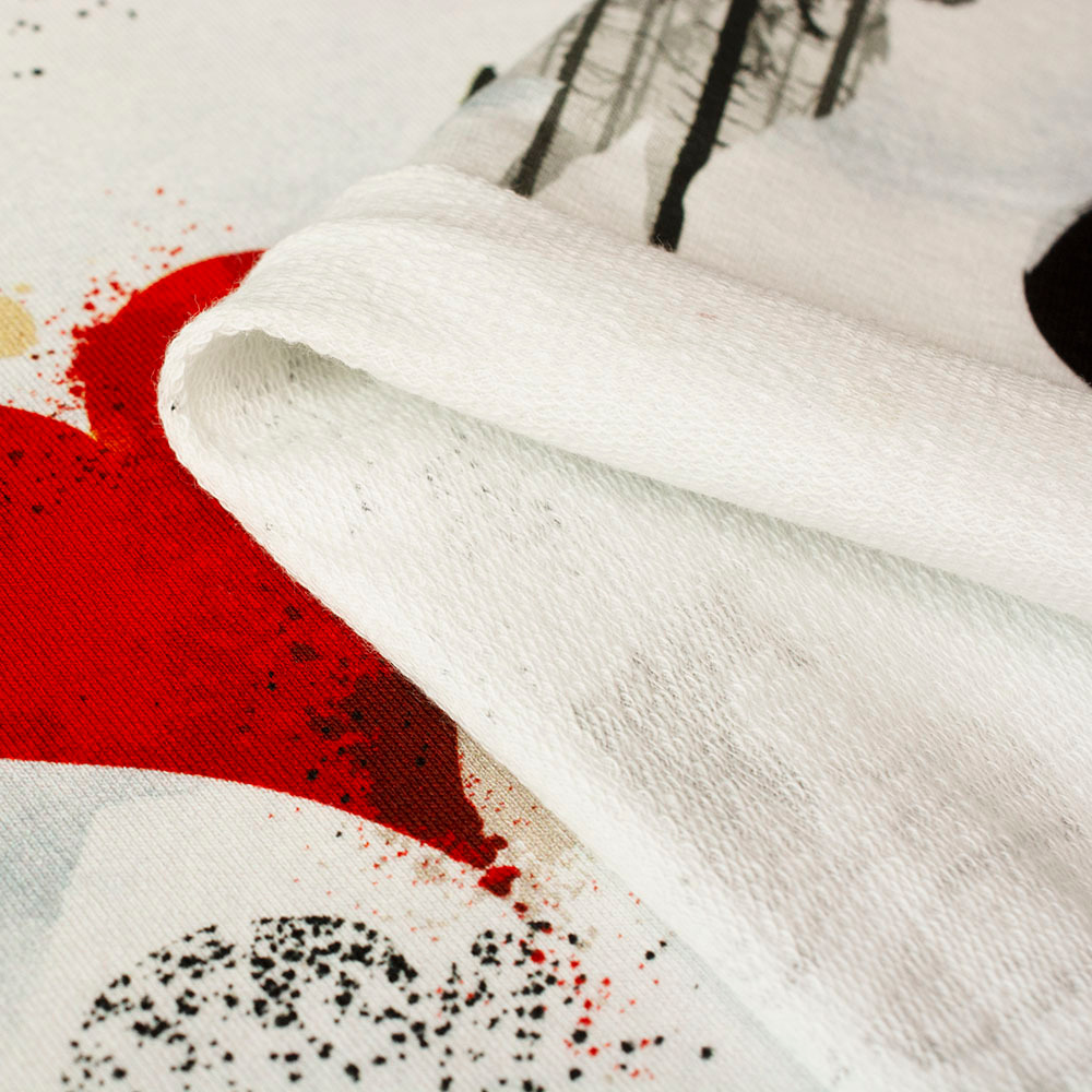 Dzianinę dodatkowo zdobi bardzo modny wzór wykonany za pomocą druku cyfrowego. Ta metoda pozwala na uzyskanie wielokolorowych deseni o trwałych i nasyconych barwach. Druk nie jest wyczuwalny w dotyku oraz nie wpływa na miękkość dzianiny.