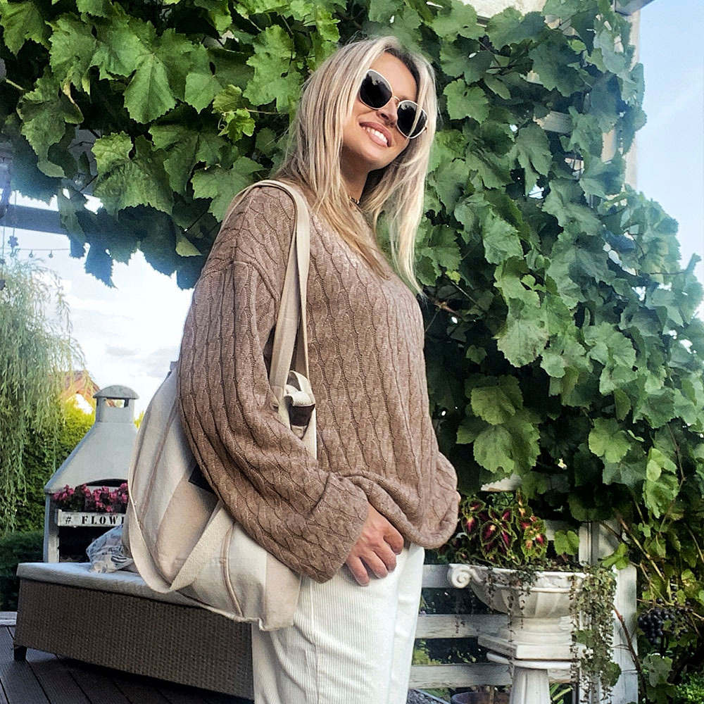 Swetrowa dzianina o efektownym splocie warkoczowym, wykonana z mieszanki włókien naturalnych i syntetycznych. Jest miękka, elastyczna i przyjemna w dotyku, dzięki czemu zapewnia wysoki komfort noszenia. Jej przewiewna struktura sprawia, że doskonale sprawdza się w cieplejsze dni. Materiał dobrze układa się na sylwetce, podkreślając jej kształt i dodając stylowego charakteru. Idealna do szycia swetrów, bluzek, tunik, sukienek oraz modnych dodatków.