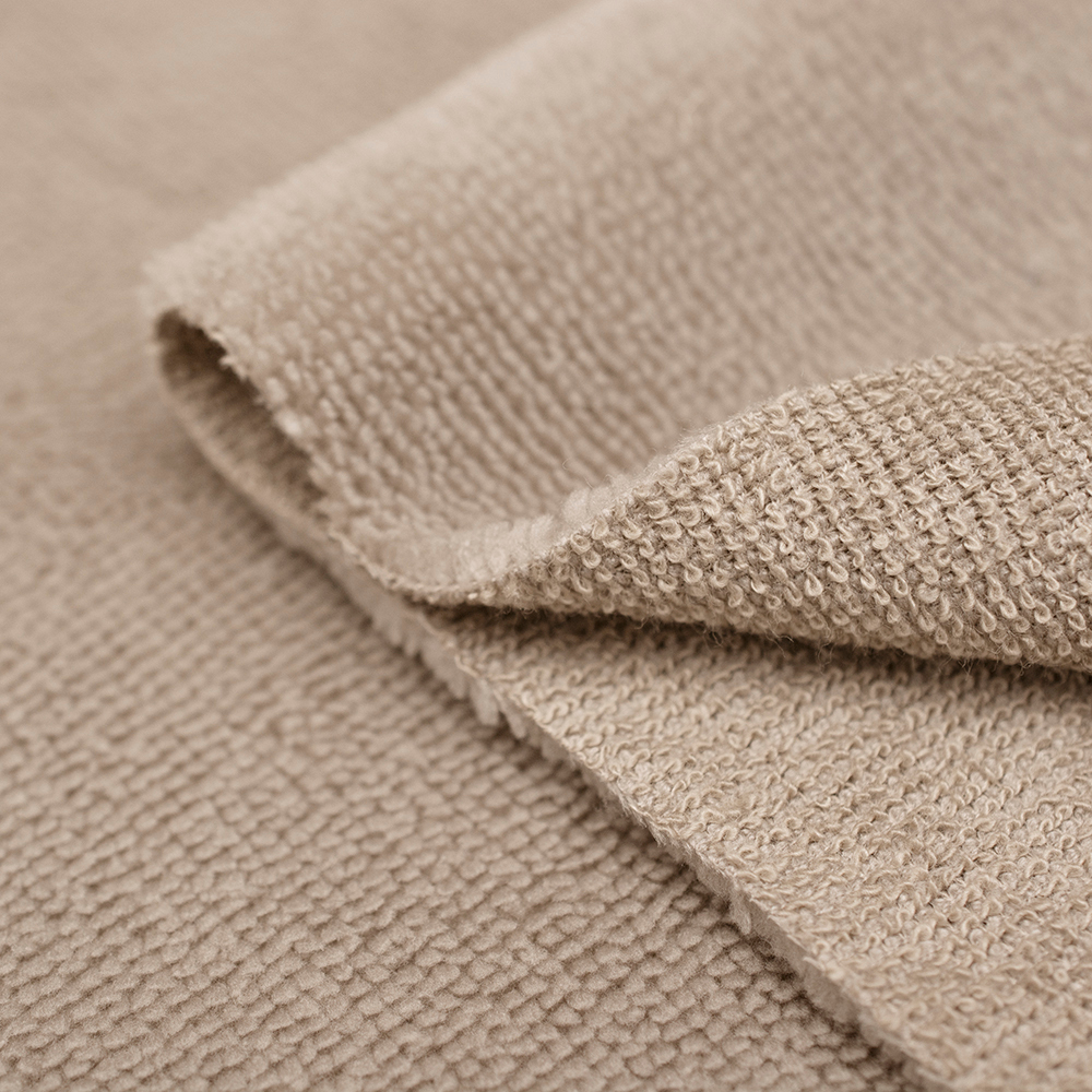 Tkanina Frotte wykonana z mieszanki włókien bawełnianych oraz bambusowych. Charakteryzuje się świetną oddychalnością, bardzo dobrze chłonie wilgoć, posiada właściwości antybakteryjne oraz antygrzybiczne. Jest miękka i delikatna w dotyku.