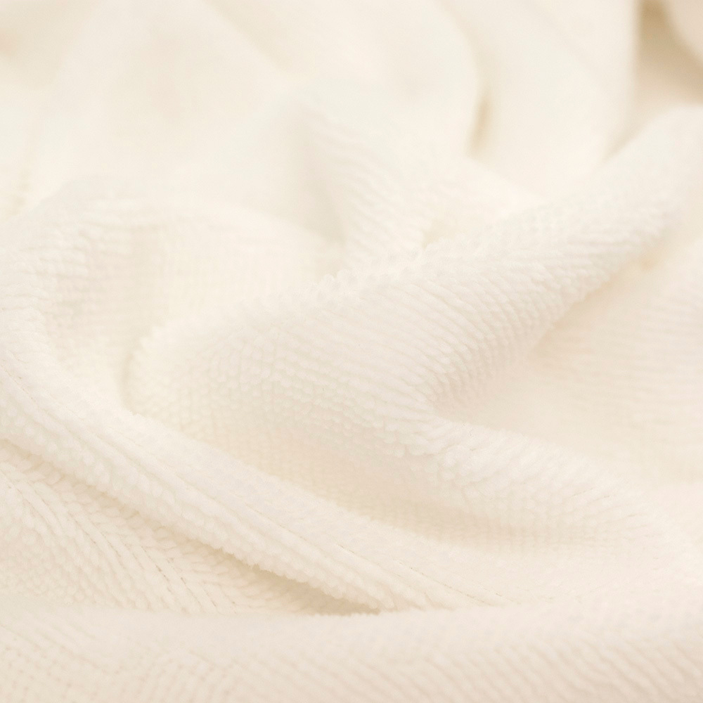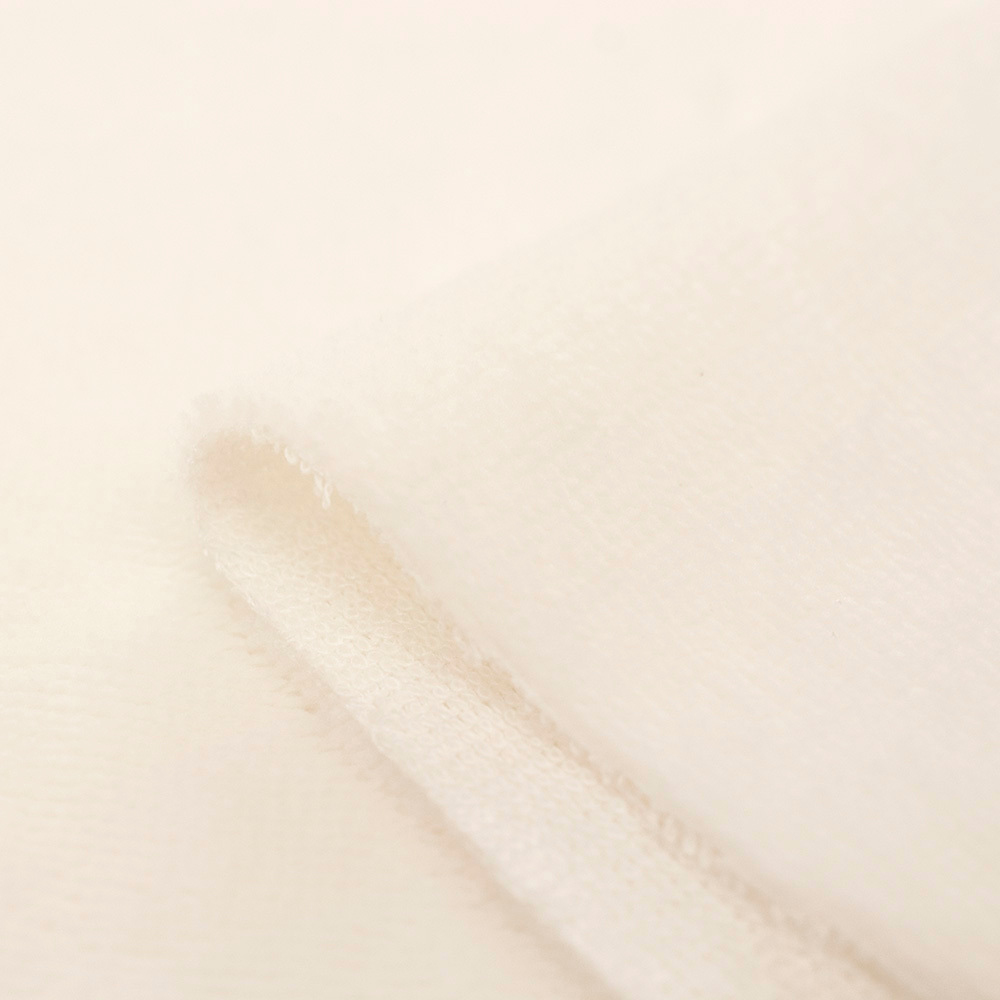Tkanina Frotte wykonana z mieszanki włókien bawełnianych oraz bambusowych. Charakteryzuje się świetną oddychalnością, bardzo dobrze chłonie wilgoć, posiada właściwości antybakteryjne oraz antygrzybiczne. Jest miękka i delikatna w dotyku.