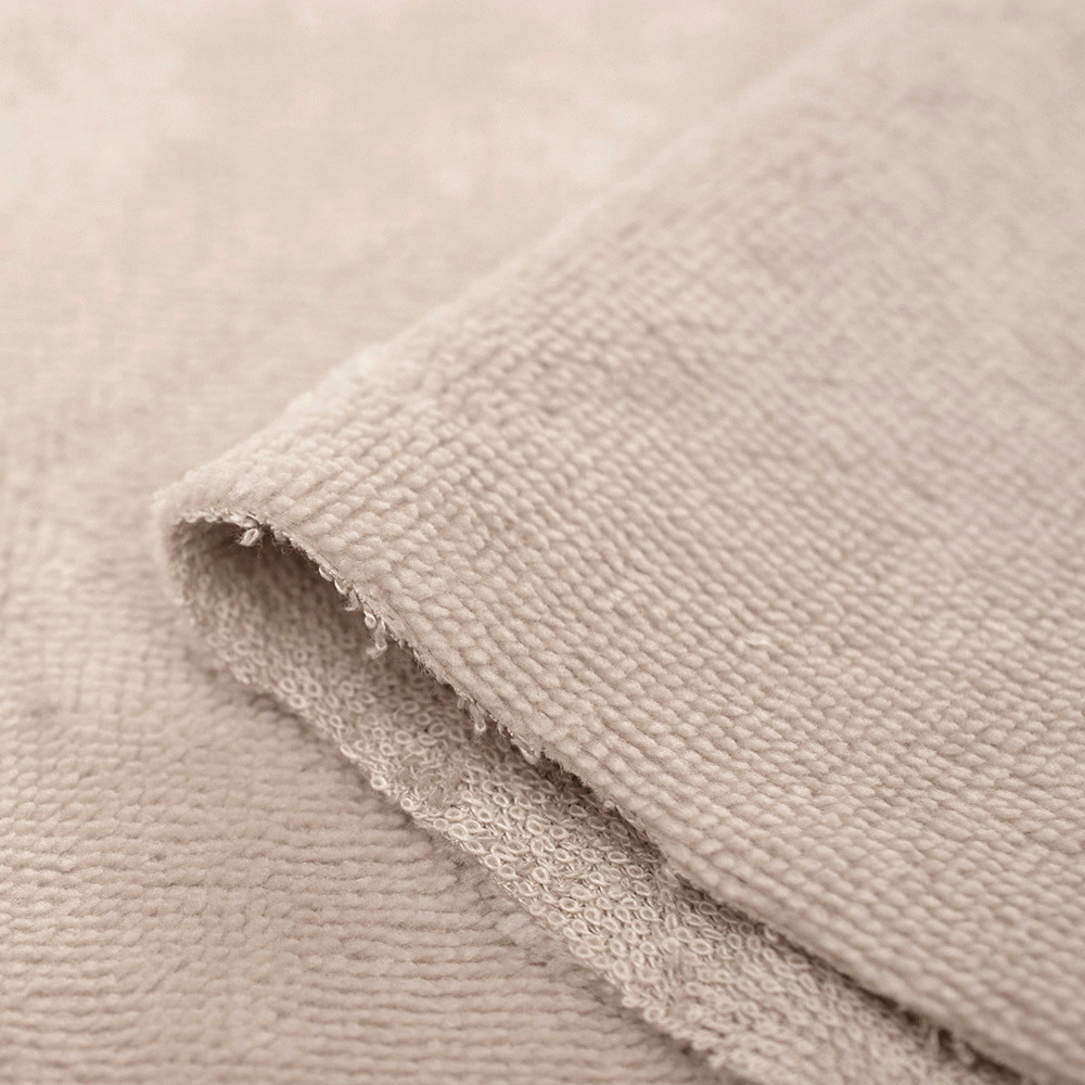Tkanina Frotte wykonana z mieszanki włókien bawełnianych oraz bambusowych.