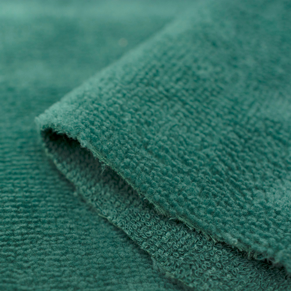 Tkanina Frotte wykonana z mieszanki włókien bawełnianych oraz bambusowych. Charakteryzuje się świetną oddychalnością, bardzo dobrze chłonie wilgoć, posiada właściwości antybakteryjne oraz antygrzybiczne. Jest miękka i delikatna w dotyku.