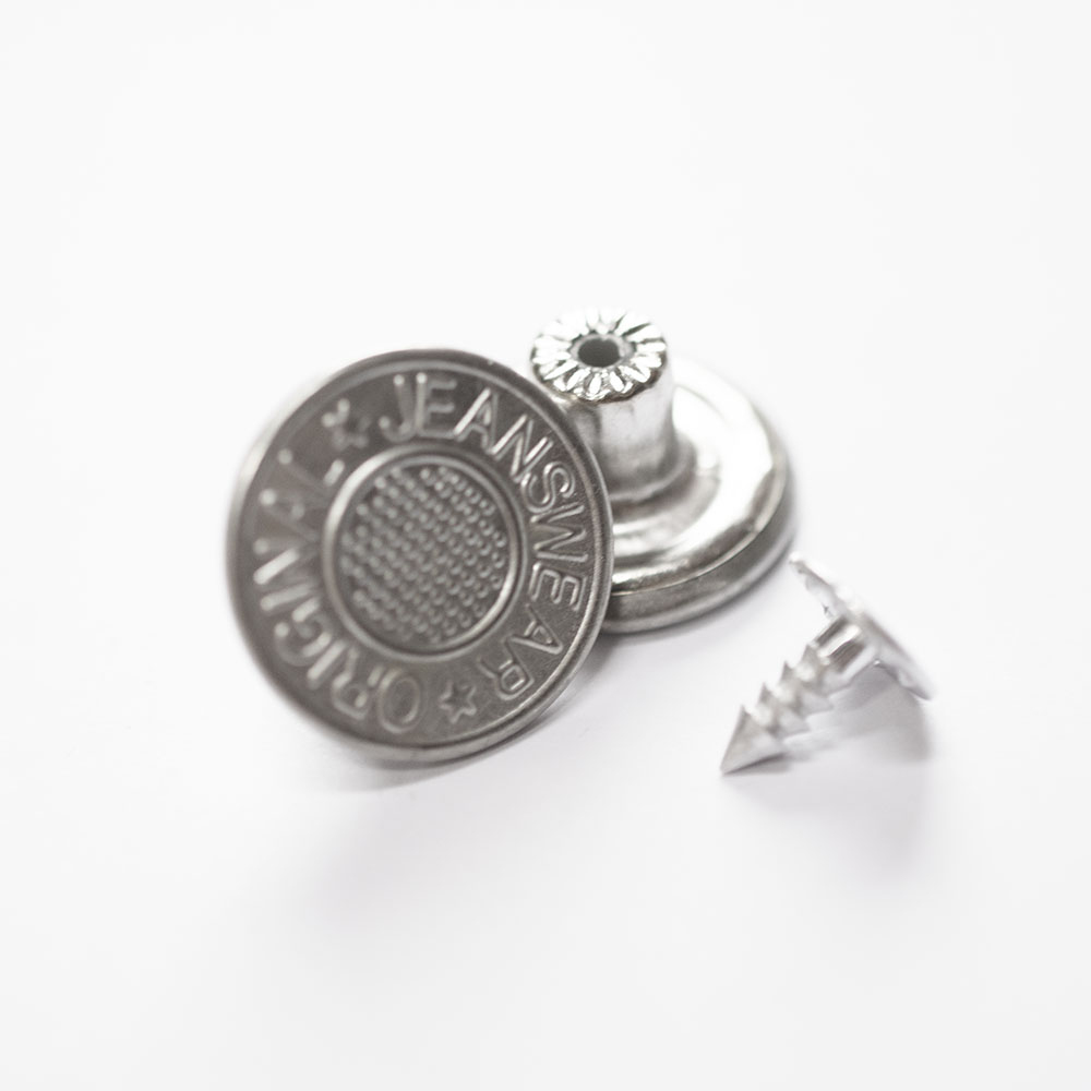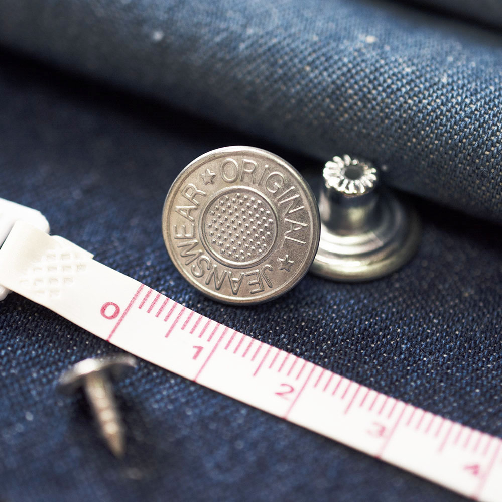 Guzik metalowy w kształcie koła o średnicy 1,6 cm. Świetnie sprawdzi się jako uzupełnienie do jeansów, katan i kurtek.