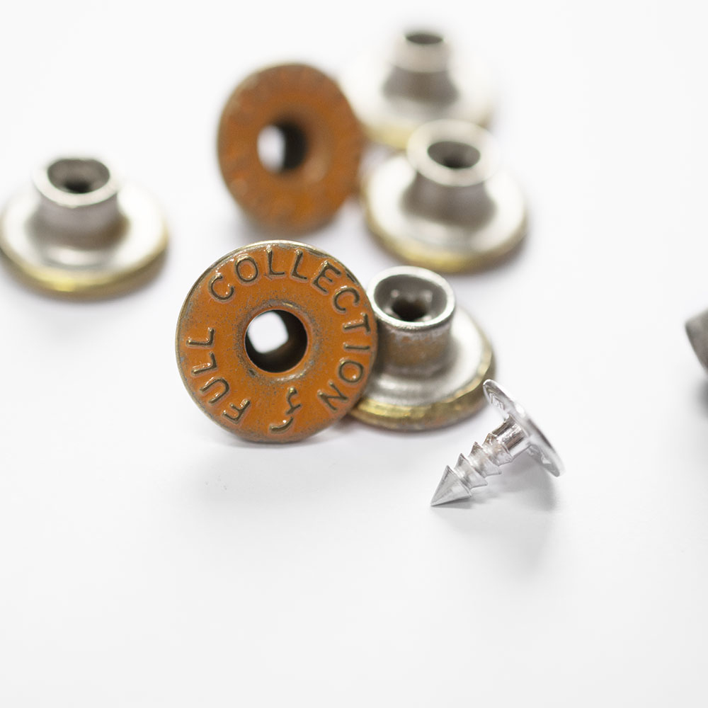Guzik metalowy w kształcie koła o średnicy 1,4 cm. Świetnie sprawdzi się jako uzupełnienie do jeansów, katan i kurtek.