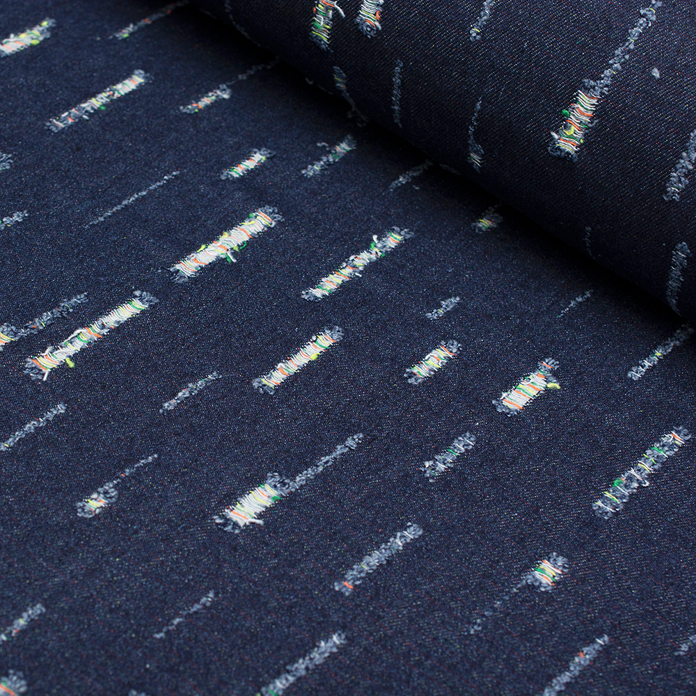 Jeans Arte to wyjątkowa tkanina o miękkiej, przyjemnej w dotyku fakturze, która od razu przyciąga uwagę swoim niezwykłym urokiem. Charakterystyczne przetarcia ujawniają kolorowe nitki ukryte w strukturze materiału, dodając mu artystycznego, niepowtarzalnego wyrazu. Ten efekt sprawia, że każdy projekt zyskuje indywidualny charakter i subtelną głębię. Tkanina doskonale nadaje się do szycia kurtek, katan, kamizelek, spódnic czy toreb, łącząc wygodę z modnym stylem. To idealny wybór dla osób, które lubią tkaniny z duszą i wyrazistym detalem.