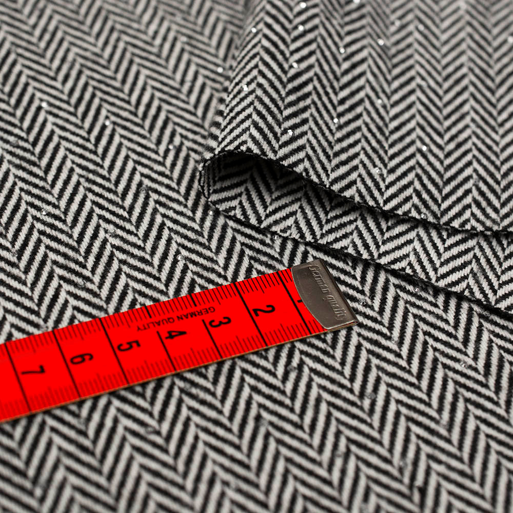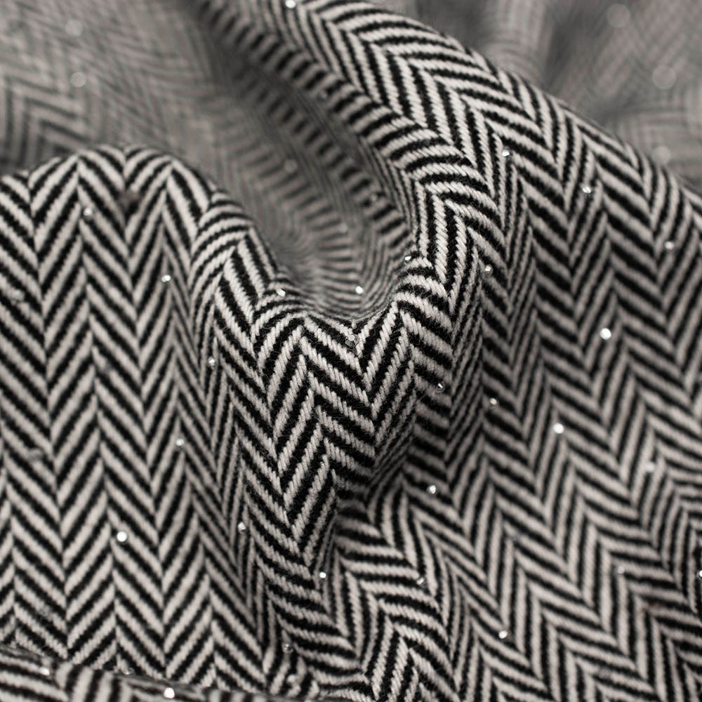 Elegancka tkanina ubraniowa o klasycznym wzorze jodełki to doskonały wybór na stylowe i ponadczasowe kreacje. Miękka i przyjemna w dotyku, zapewnia komfort noszenia oraz pięknie układa się na sylwetce. Jej wyjątkowy charakter podkreślają subtelne diamenciki, które dodają materiałowi delikatnego blasku. Idealnie nadaje się na marynarki, spódnice, kamizelki oraz inne elementy garderoby. Sprawdzi się zarówno na wyjątkowe okazje, jak i w codziennych stylizacjach, dodając im eleganckiego wyrazu.