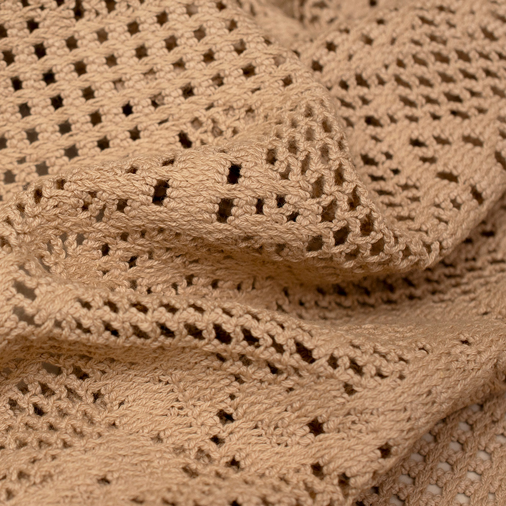 Ażurowa koronka z miękkiej, przyjemnej w dotyku bawełny o jednolitym kolorze. Pięknie prezentuje się na sylwetce, dodaje lekkości każdej stylizacji. Idealna na letnie projekty w estetyce Boho, Eko czy Natur. Doskonale sprawdzi się w sukienkach, spódnicach, bluzkach oraz narzutkach, a także jako efektowny detal, na przykład w formie torebki lub innych dodatków.
