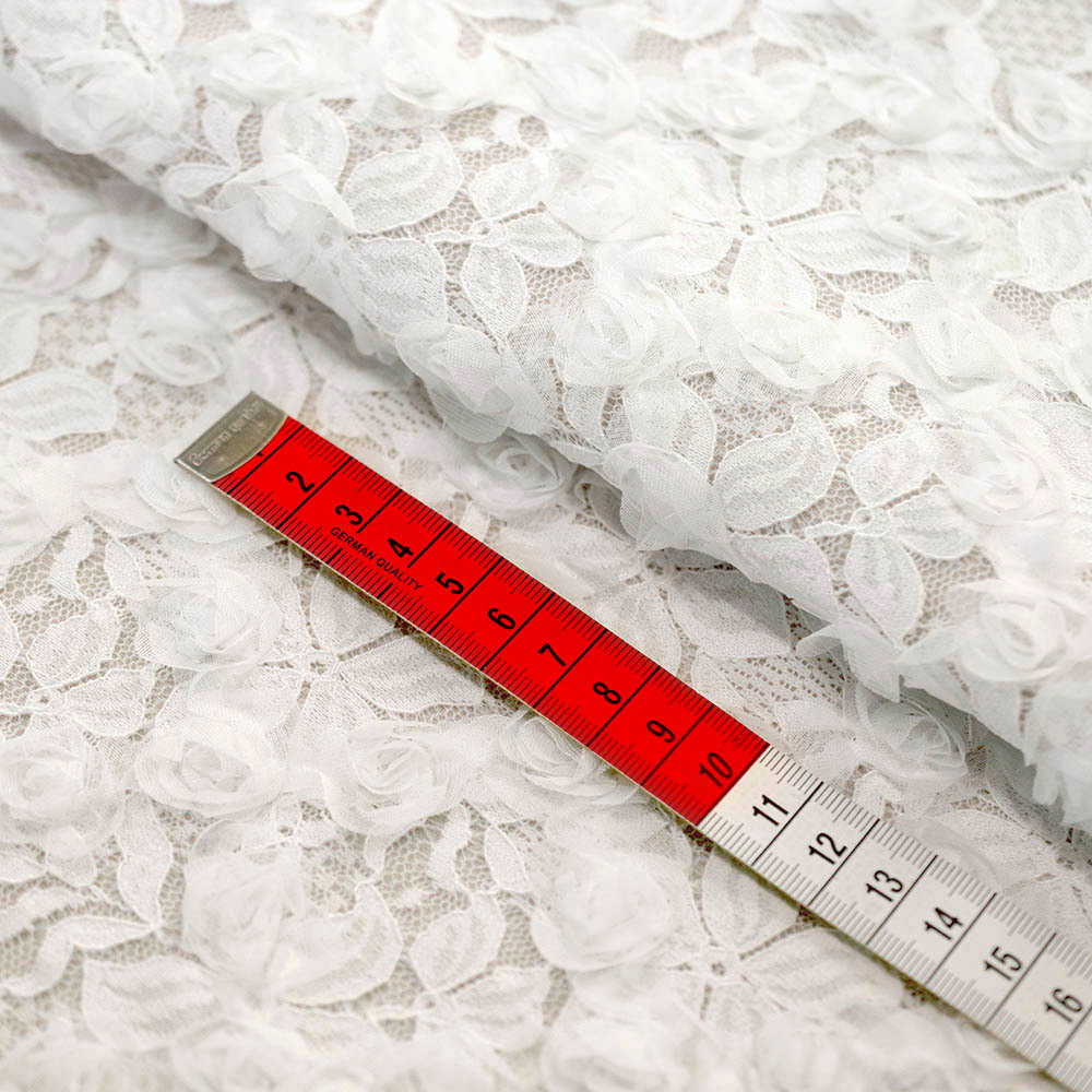 Biała koronka, delikatna i niezwykle elegancka tkanina, która przyciąga uwagę swoją lekkością oraz subtelnym wykończeniem. Jej finezyjny charakter sprawia, że doskonale nadaje się do szycia romantycznych sukienek, ozdobnych bluzek czy stylowych dodatków. Materiał wyróżnia się wyjątkowym wzorem z efektem 3D, który dodaje głębi i niepowtarzalnego uroku każdej kreacji. Koronka pięknie prezentuje się zarówno w klasycznych projektach, jak i nowoczesnych stylizacjach. Dzięki swojej uniwersalności może być wykorzystana zarówno w modzie codziennej, jak i okazjonalnej.