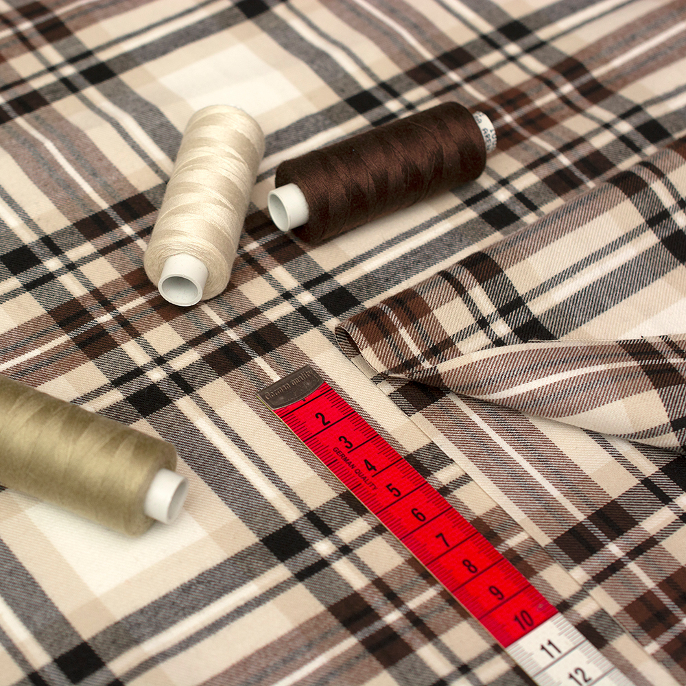 Miękka flanela wykonana z połączenia włókien bawełnianych i syntetycznych, w modnym wzorze kraty. Materiał jest przyjemny w dotyku, dobrze przepuszcza powietrze i cechuje się zwiększoną odpornością na uszkodzenia mechaniczne. Dwustronny wzór podnosi walory estetyczne i funkcjonalność tkaniny, umożliwiając wszechstronne zastosowanie. Doskonale sprawdza się w codziennej odzieży, szczególnie w koszulach, sukienkach o klasycznym kroju oraz modelach typu szmizjerka. Kraciasta spódnica uszyta z tej tkaniny to modny wybór, który idealnie wpisuje się w aktualne trendy.