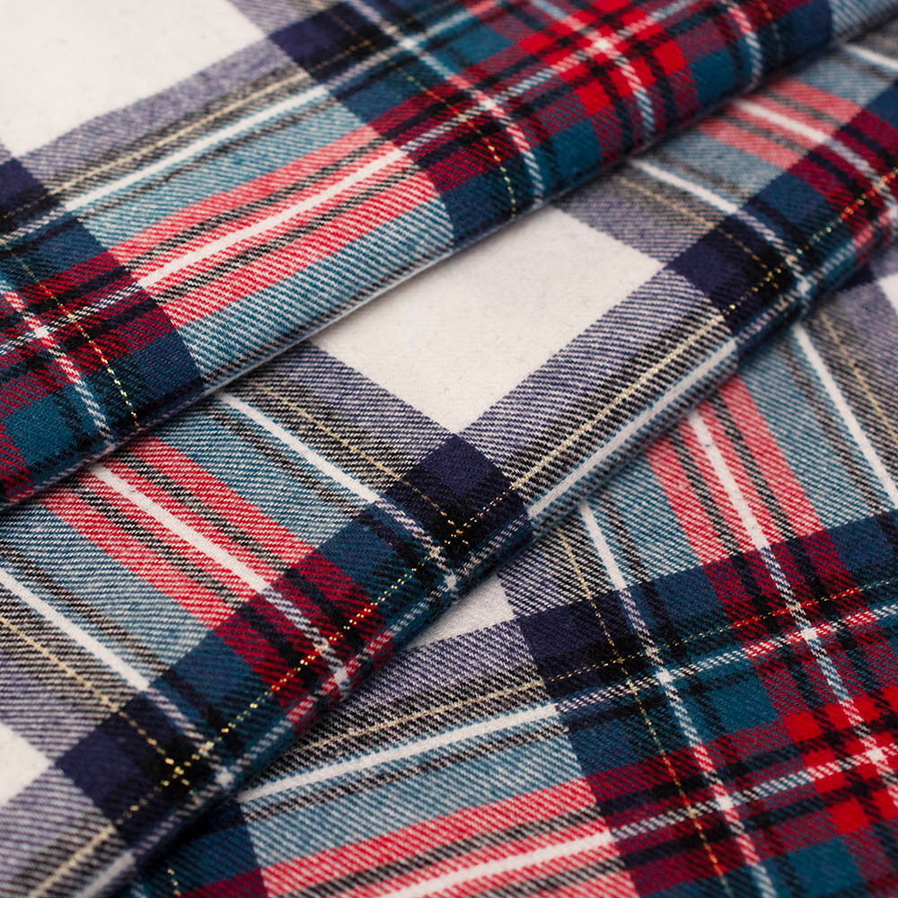 Miękka flanela wykonana z połączenia włókien bawełnianych i syntetycznych, w modnym wzorze kraty. Materiał jest przyjemny w dotyku, dobrze przepuszcza powietrze i cechuje się zwiększoną odpornością na uszkodzenia mechaniczne. Dwustronny wzór podnosi walory estetyczne i funkcjonalność tkaniny, umożliwiając wszechstronne zastosowanie. Doskonale sprawdza się w codziennej odzieży, szczególnie w koszulach, sukienkach o klasycznym kroju oraz modelach typu szmizjerka. Kraciasta spódnica uszyta z tej tkaniny to modny wybór, który idealnie wpisuje się w aktualne trendy.