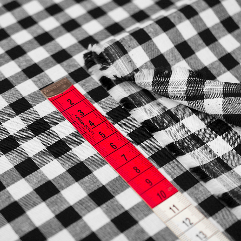 Tkanina wykonana z przędzy bawełnianej wyróżnia się luźniejszym, wyraźnym splotem oraz włóknami barwionymi oddzielnie, które tworzą klasyczny wzór kratki.