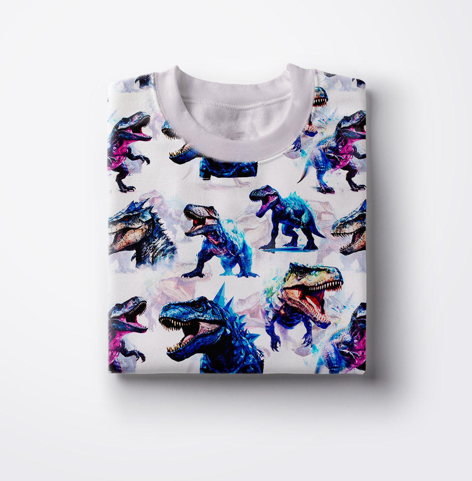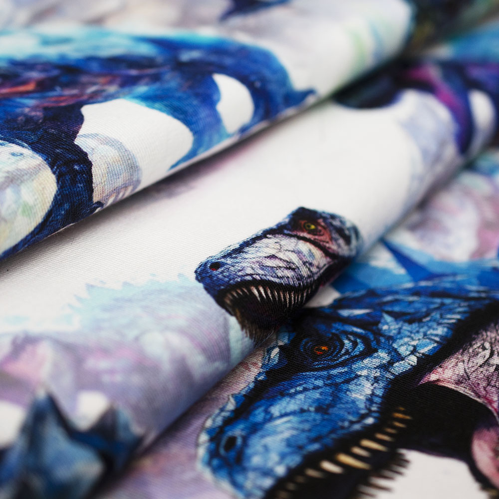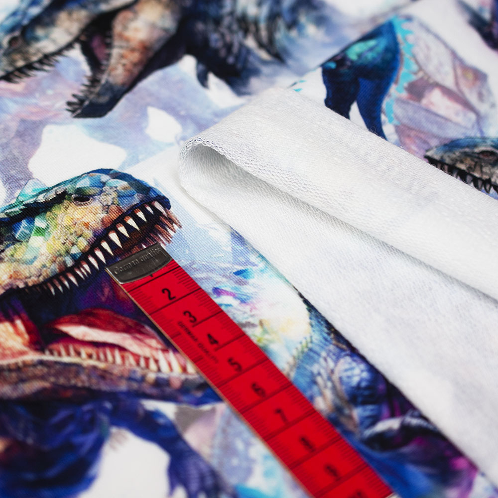 Dzianinę dodatkowo zdobi bardzo modny wzór wykonany za pomocą druku cyfrowego. Ta metoda pozwala na uzyskanie wielokolorowych deseni o trwałych i nasyconych barwach. Druk nie jest wyczuwalny w dotyku oraz nie wpływa na miękkość dzianiny.