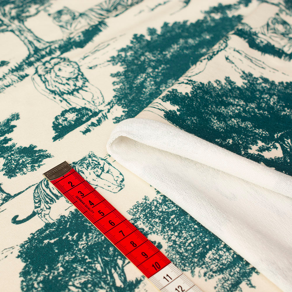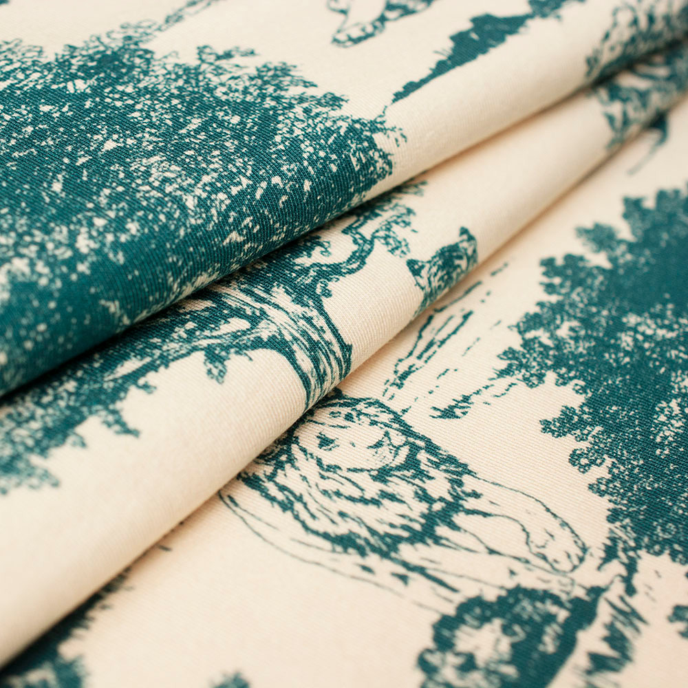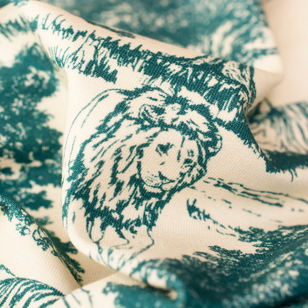 Dzianinę dodatkowo zdobi bardzo modny wzór wykonany za pomocą druku cyfrowego. Ta metoda pozwala na uzyskanie wielokolorowych deseni o trwałych i nasyconych barwach. Druk nie jest wyczuwalny w dotyku oraz nie wpływa na miękkość dzianiny.