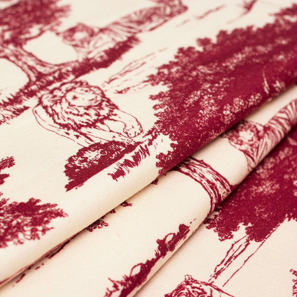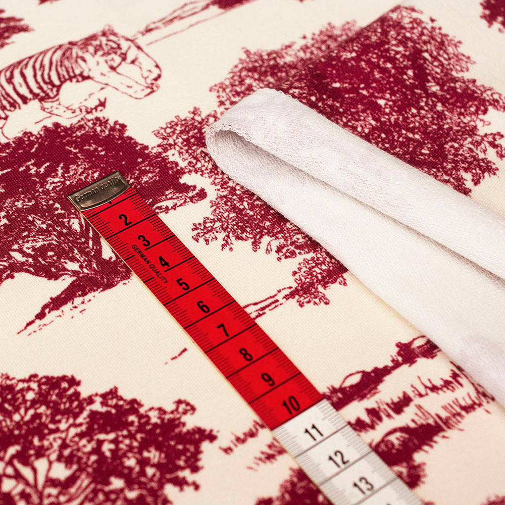 Dzianinę dodatkowo zdobi bardzo modny wzór wykonany za pomocą druku cyfrowego. Ta metoda pozwala na uzyskanie wielokolorowych deseni o trwałych i nasyconych barwach. Druk nie jest wyczuwalny w dotyku oraz nie wpływa na miękkość dzianiny.
