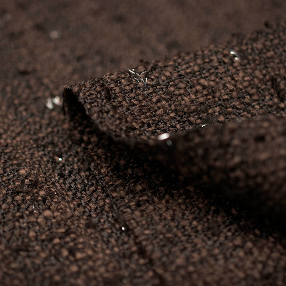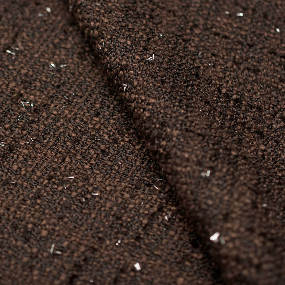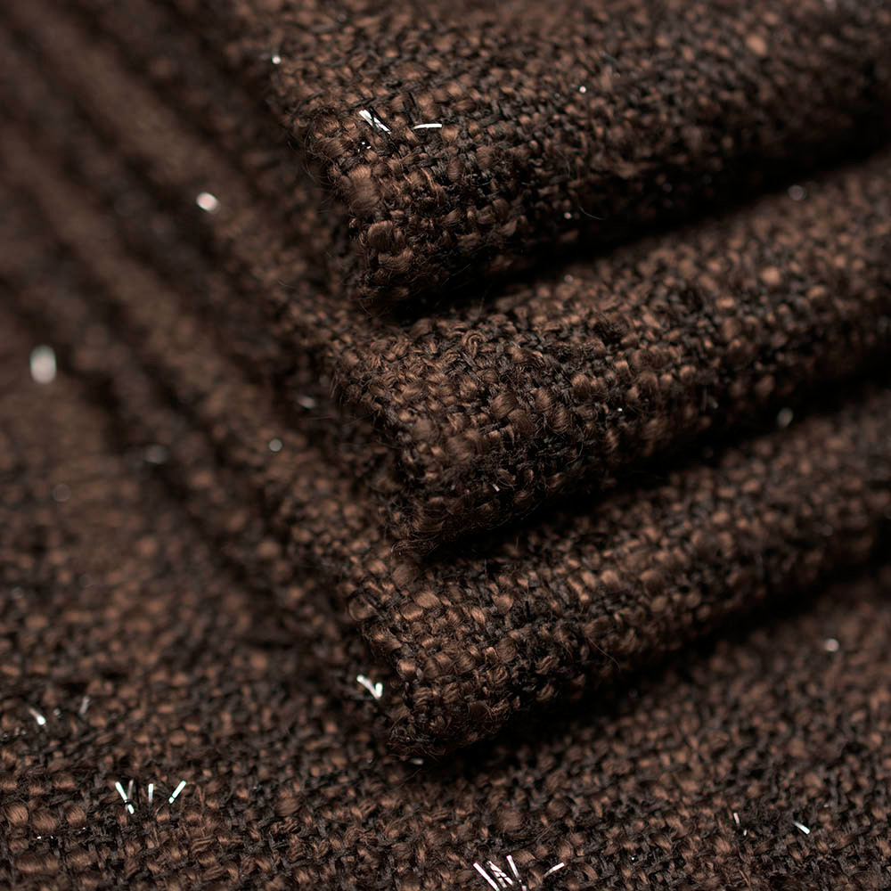 Tkanina Chanel o eleganckim charakterze została delikatnie przepleciona srebrną nitką, która dodaje jej subtelnego blasku i wyjątkowego uroku. Miękka i przyjemna w dotyku, zapewnia wysoki komfort noszenia, jednocześnie prezentując się niezwykle stylowo. Idealnie sprawdza się w projektach żakietów, sukienek i spódnic, podkreślając ich klasyczny, a zarazem nowoczesny charakter. To doskonały wybór do kolekcji premium, w których liczy się ponadczasowy szyk i dbałość o detale.
