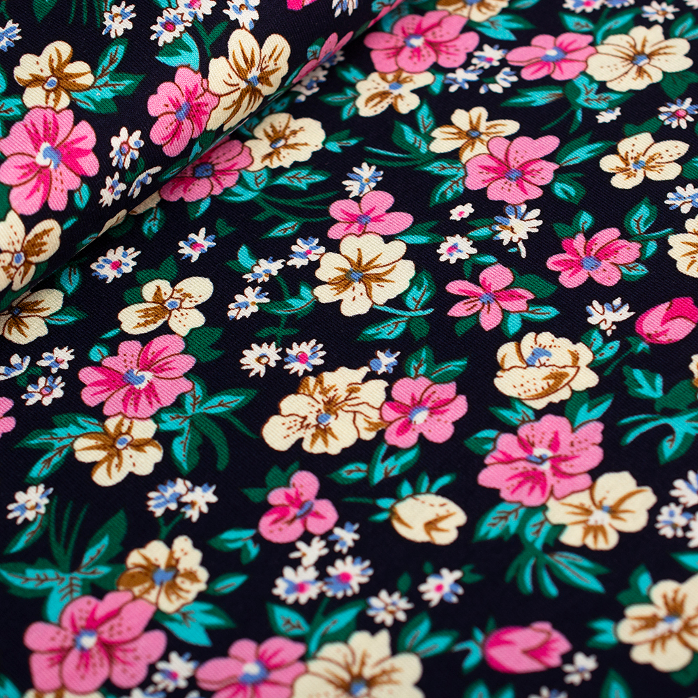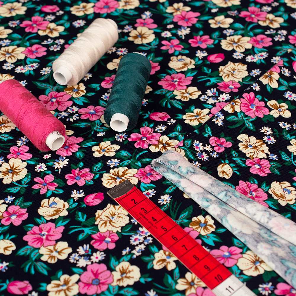 Dzianina wiskozowa w bardzo modnym wzorze paisley. Jest lekka i elastyczna, posiada niską gramaturę oraz przyjemny chłodny chwyt. Układa się lejąco i miękko, bardzo ładnie dopasowuje się do sylwetki. Dzianina jest oddychająca, charakteryzuje się bardzo dobrą przepuszczalnością powietrza. Świetnie nadaje się na sukienki, bluzki oraz chusty. Modny wzór dzianiny doskonale sprawdzi się w stylizacjach noszonych na co dzień.