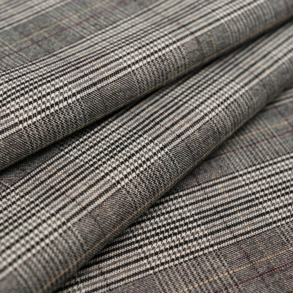 Tkanina wiskozowa wykonana z mieszanki włókien wiskozy i syntetycznych to doskonały wybór do stylowych i wygodnych projektów. Jest miękka, oddychająca i bardzo przyjemna w dotyku, co zapewnia wysoki komfort noszenia. Kratka dodaje materiałowi wyrazistości i świetnie wpisuje się w aktualne trendy. Tkanina dobrze układa się na sylwetce, sprawdzając się zarówno w codziennych, jak i bardziej eleganckich fasonach. Doskonale nadaje się zarówno do kolekcji damskich, jak i męskich, podkreślając charakter i styl każdej kreacji.
