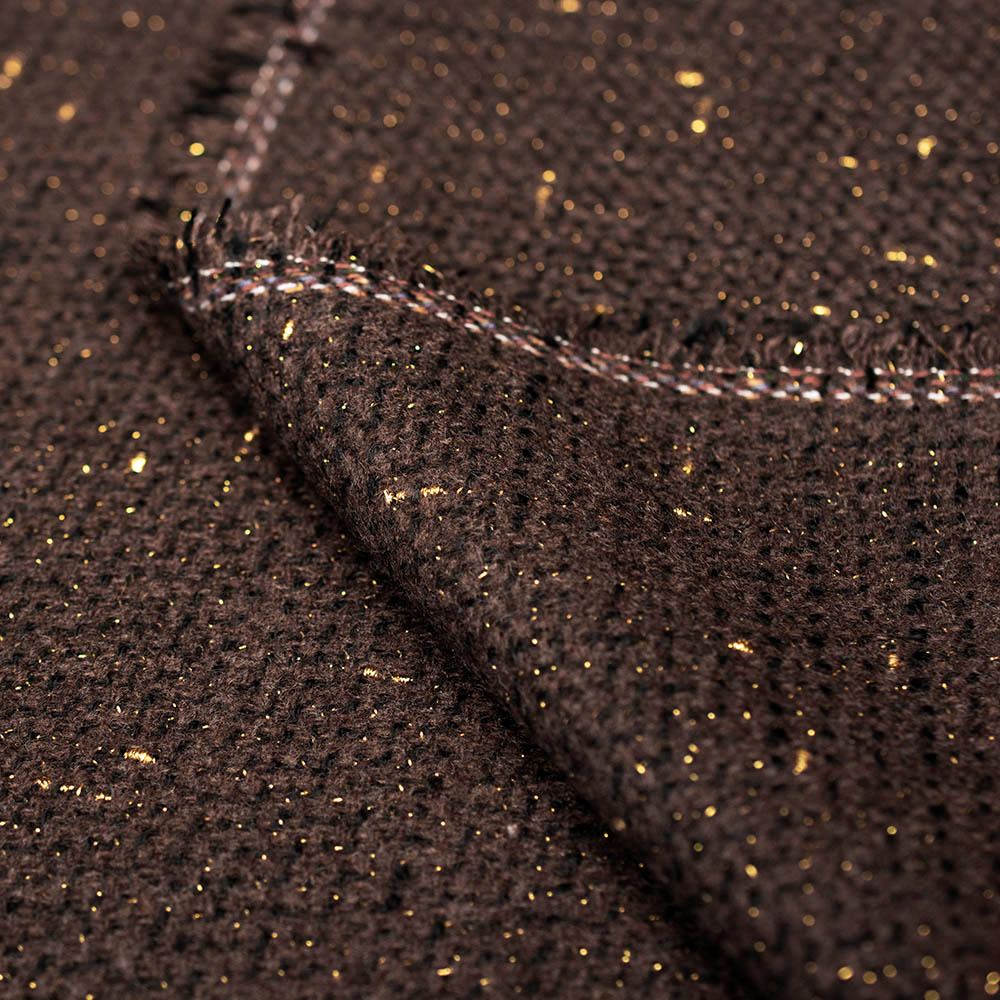 Tkanina Chanel o wyjątkowo eleganckim charakterze została subtelnie wzbogacona złotą nitką, która nadaje jej dyskretny, szlachetny blask.