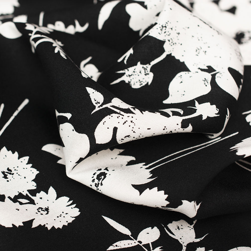 Wzorzysta tkanina wiskozowa, idealna na sukienki, spódnice i bluzki. Wykonana z włókien naturalnego pochodzenia, charakteryzuje się świetną przepuszczalnością powietrza. Jest lekka, zwiewna, układa się miękko i lejąco. Ze względu na swoje właściwości tkaniny tego typu świetnie nadają się na luźniejsze lub rozkloszowane fasony, bardzo ładnie prezentują się przy falbanach lub marszczeniach.