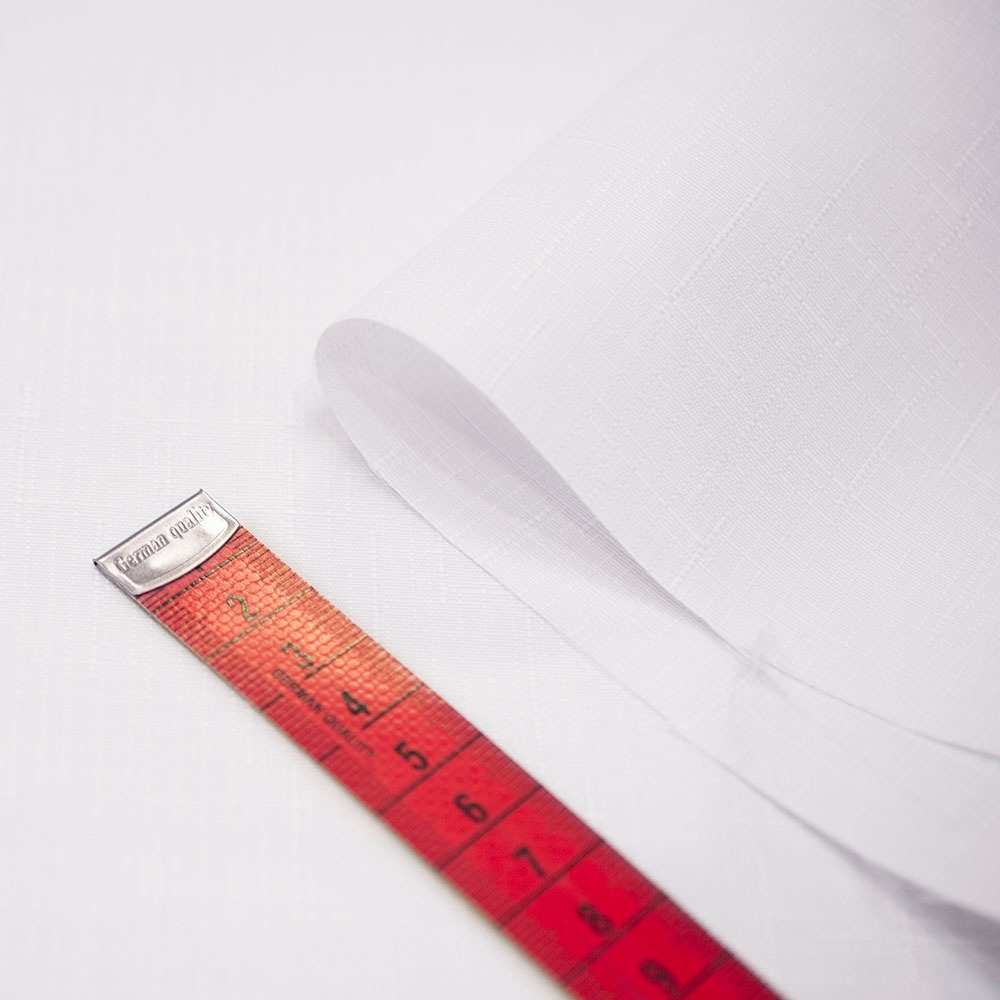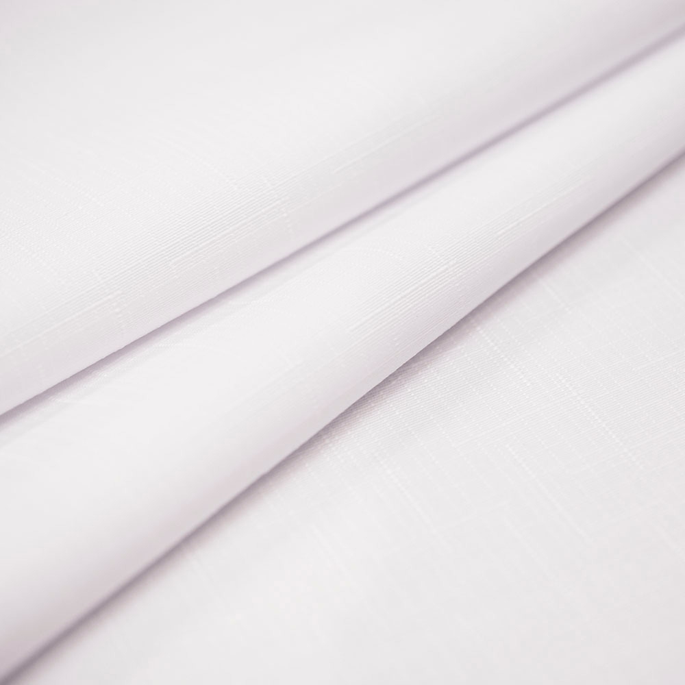 Tkanina obrusowa biała w typie żakardowym, wykonana z włókien poliestrowych. Posiada właściwości plamoodporne, jest bardzo praktyczna w codziennym użytkowaniu. Tkaniny tego typu często wykorzystywane są do zastosowań komercyjnych.Dodatkowym atutem tkaniny jest wzór przypominającym kratkę w stylu melanżowym.