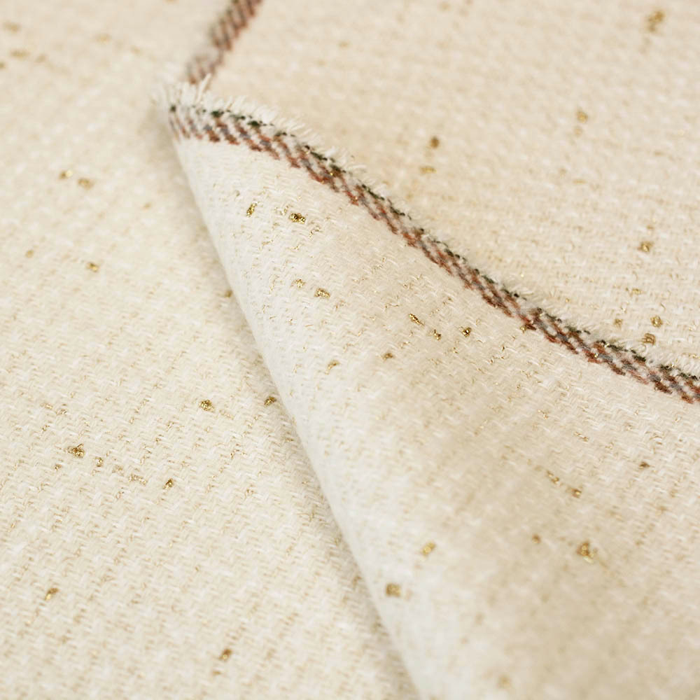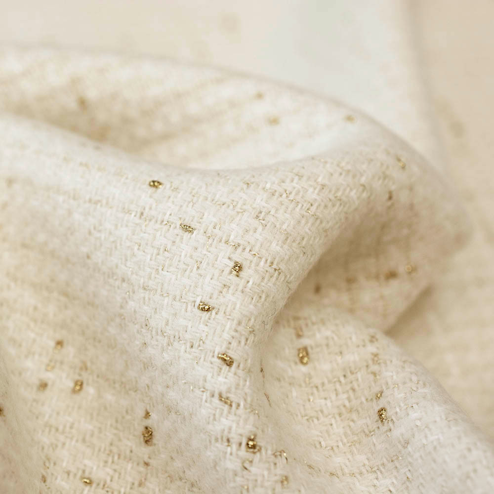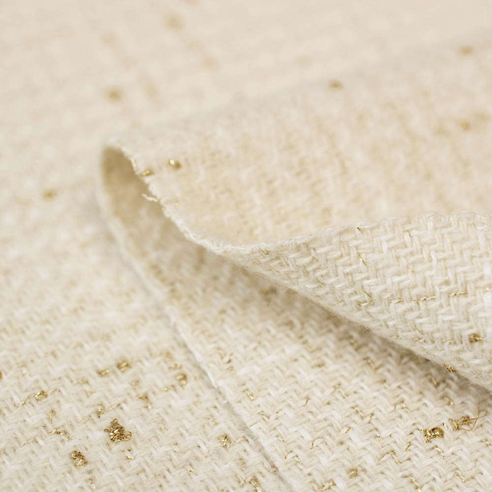 Tkanina Chanel o wyjątkowo eleganckim charakterze została subtelnie wzbogacona złotą nitką, która nadaje jej dyskretny, szlachetny blask.