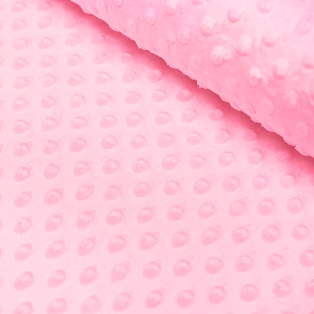 Minky Welur Kropki to bardzo popularna dzianina szczególnie wśród wyrobów dla dzieci. Dzianinę charakteryzuje krótki włos widoczny z prawej strony materiału, oraz tłoczenia w kształcie kropek, który dodaje materiałowi dużo uroku.