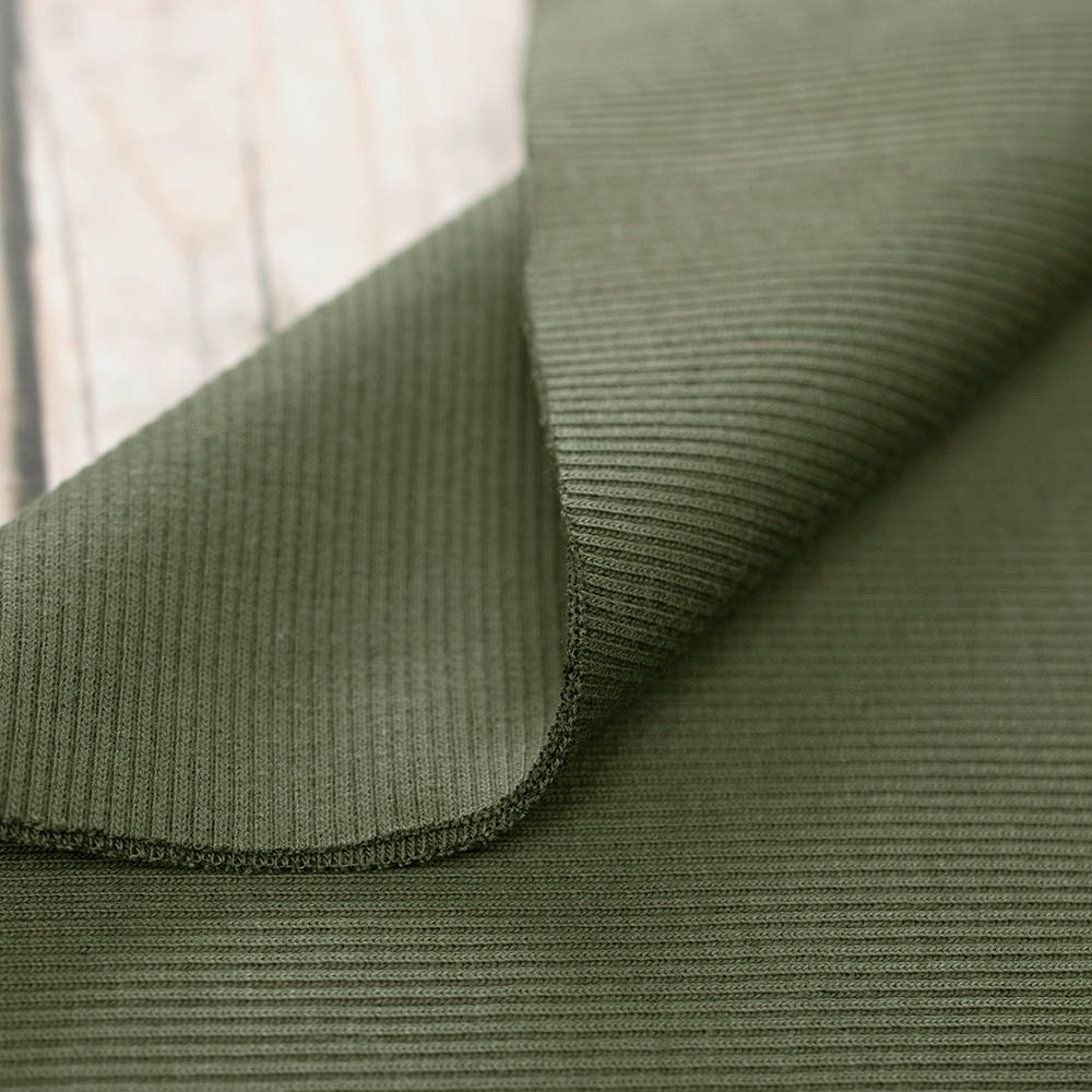 Prążkowana dzianina ściągaczowa, wykonana z naturalnych włókien bawełny.