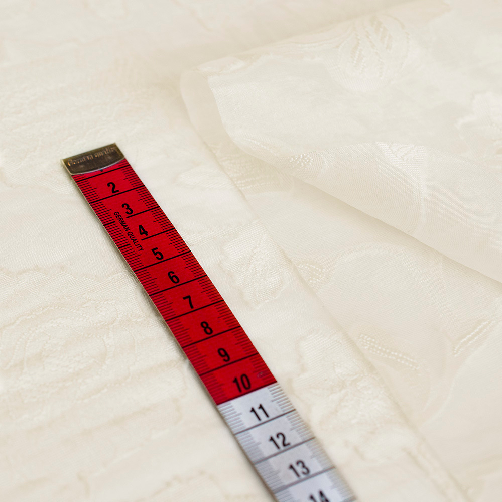Tkanina z haftem kwiatowym wyróżnia się miękkością, lekkością i przyjemnym chwytem. Jej półtransparentna struktura dodaje projektom zwiewności, a jednokolorowy haft tworzy spójną, estetyczną powierzchnię. Materiał układa się naturalnie i zapewnia dobrą przewiewność, dzięki czemu świetnie sprawdza się w cieplejsze dni.