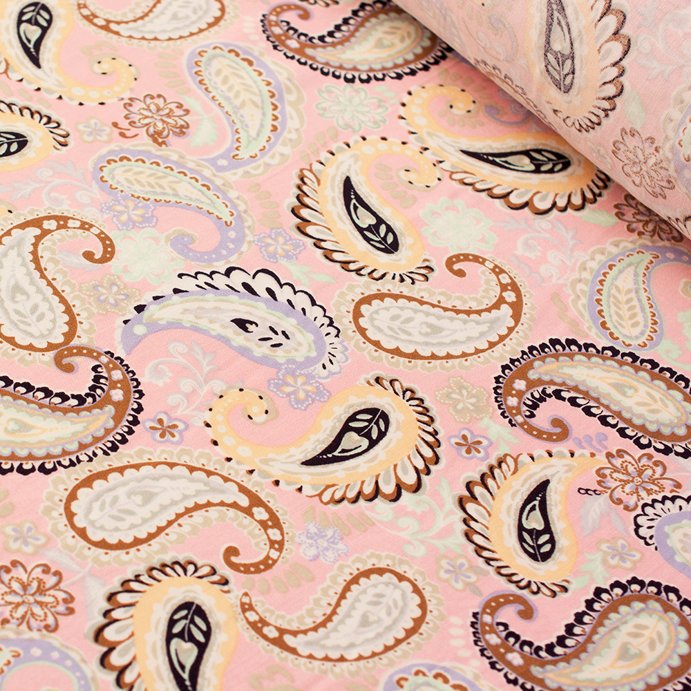 TKANINA BAMBUSOWA PASTEL PINK PAISLEY
