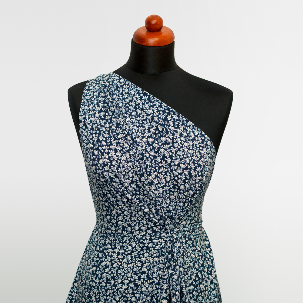 Tkanina z 100% wiskozy to lekki, miękki materiał, który pięknie układa się na sylwetce, tworząc naturalne fałdy i swobodny ruch.