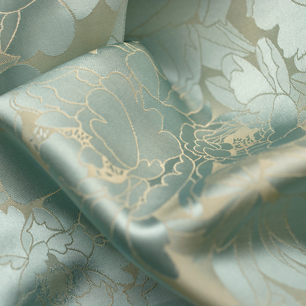 Tkanina żakardowa wykonana z wysokiej jakości satynowych włókien wiskozowych charakteryzuje się eleganckim wyglądem i przyjemną, miękką strukturą.