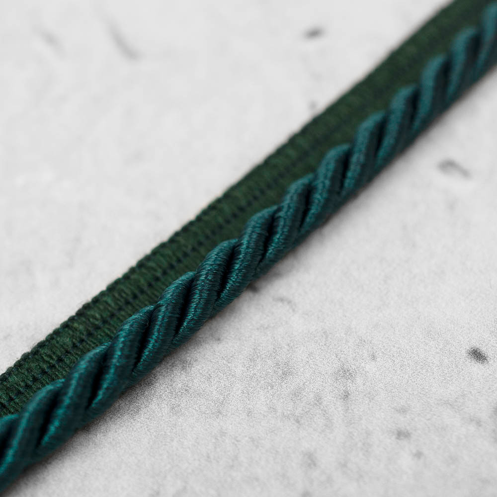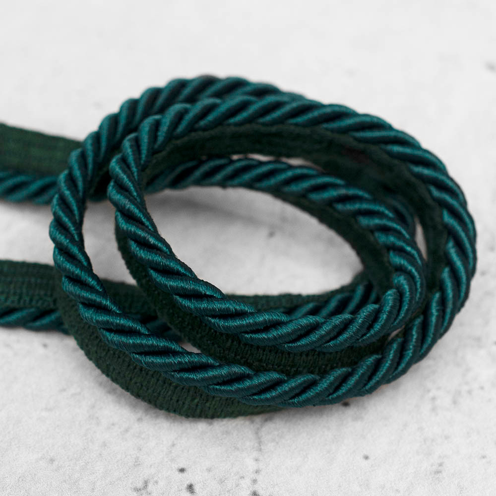 Dekoracyjna wypustka w formie skręconego sznurka, wykonana z połyskujących włókien satynowych. Idealna do stylowego wykończenia poduszek, narzut oraz tapicerki meblowej. Dodaje subtelnej elegancji i podkreśla detale aranżacji wnętrz.