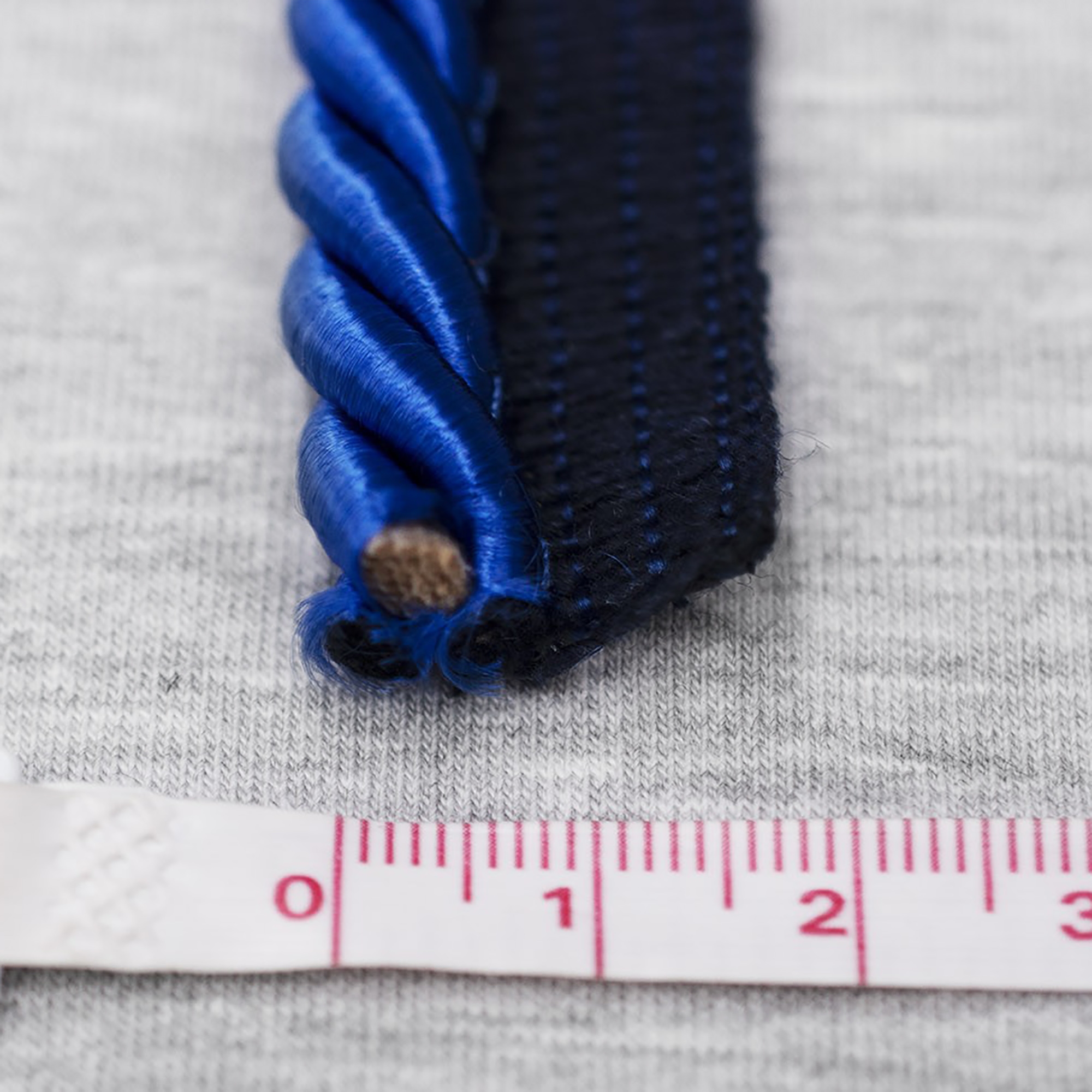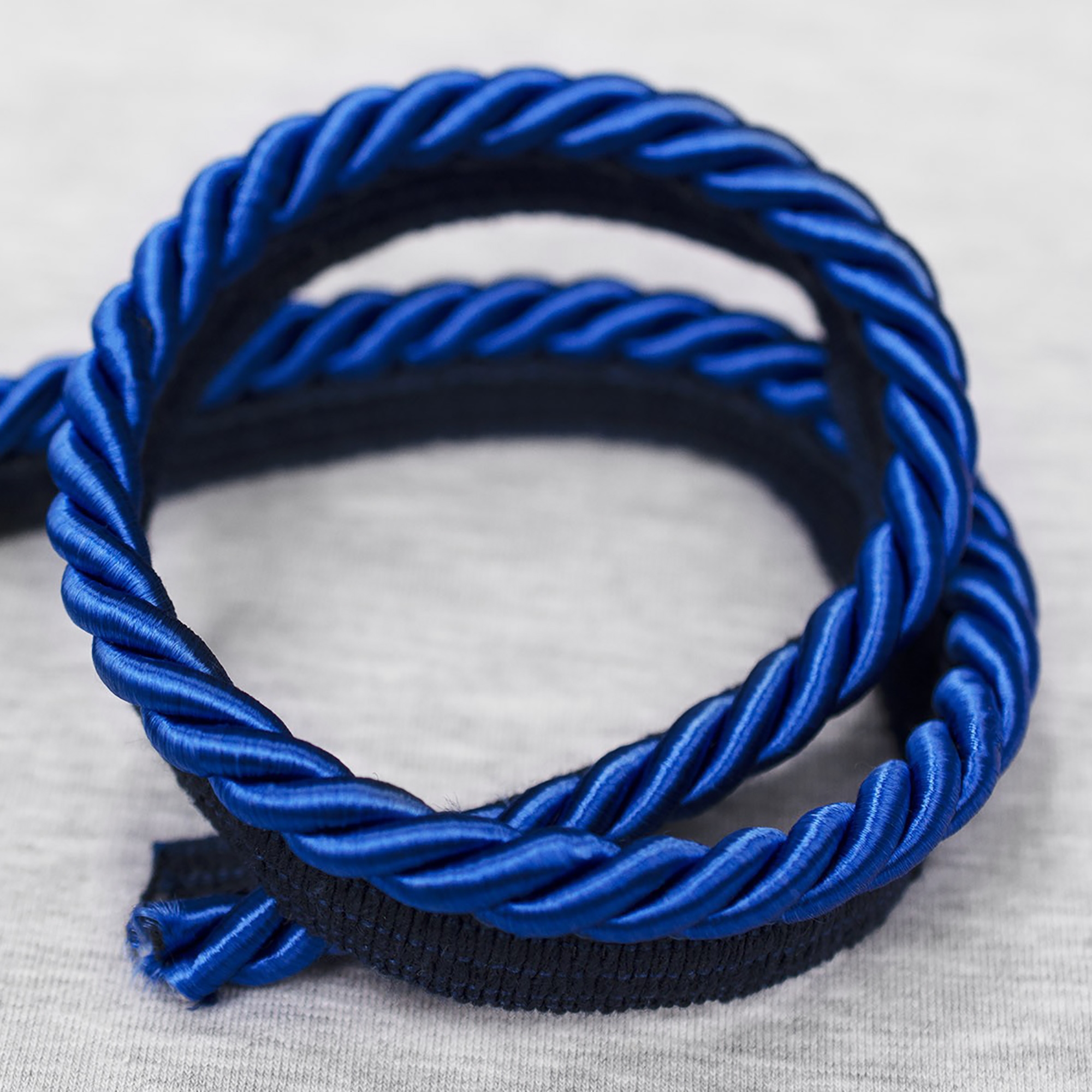 Dekoracyjna wypustka w formie skręconego sznurka, wykonana z włókien satynowych.