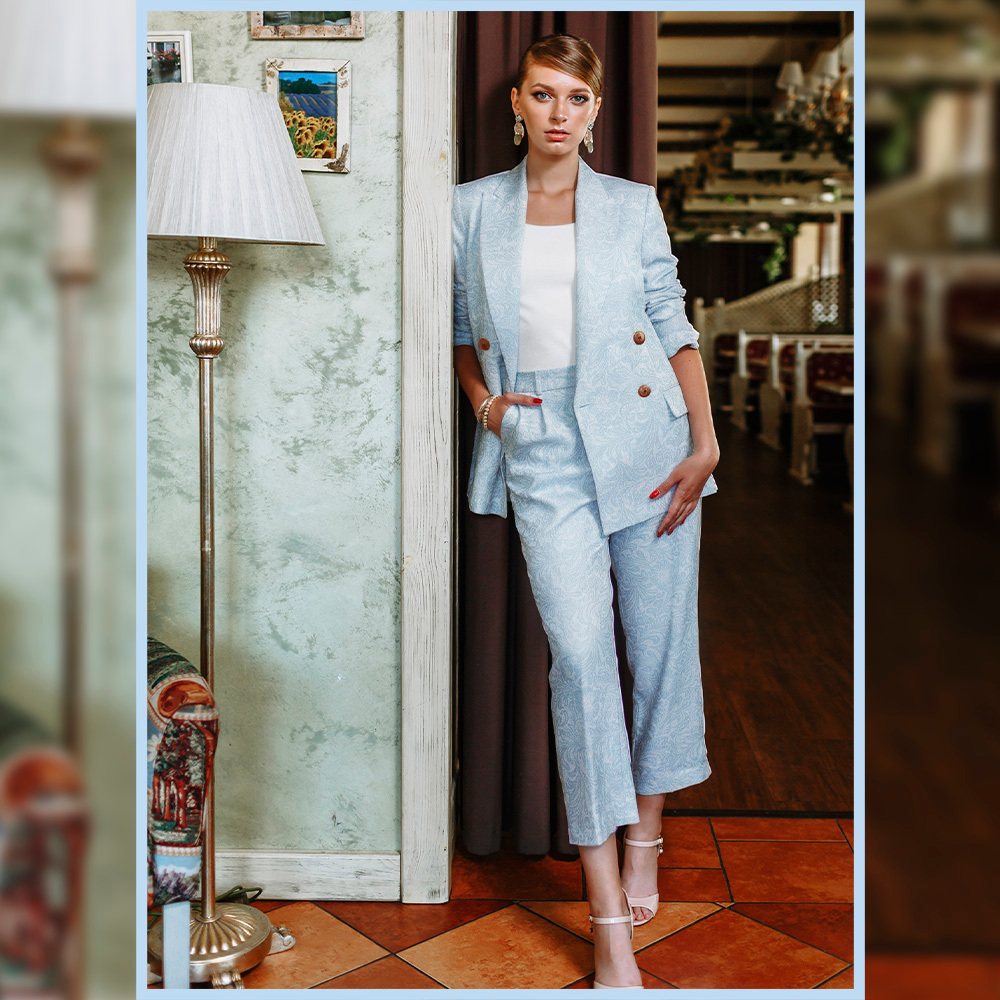 Tkanina żakardowa o jednolitym kolorze to elegancki materiał wyróżniający się charakterystycznym, strukturalnym wzorem powstającym bezpośrednio w procesie tkania. Jego powierzchnia ma harmonijną, lekko reliefową fakturę, która dodaje tkaninie głębi i szlachetności. Materiał układa się stabilnie, z naturalną plastycznością typową dla żakardu, dzięki czemu dobrze podkreśla formę odzieży. Wysoka zawartość włókien naturalnych zapewnia komfort noszenia oraz odpowiednią cyrkulację powietrza. Tkanina świetnie sprawdzi się na sukienki, spódnice, eleganckie spodnie, marynarki i żakiety.