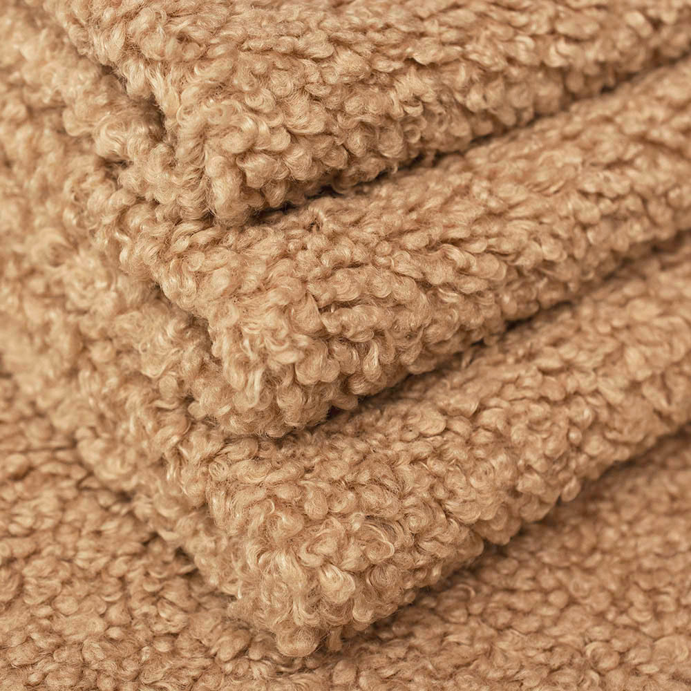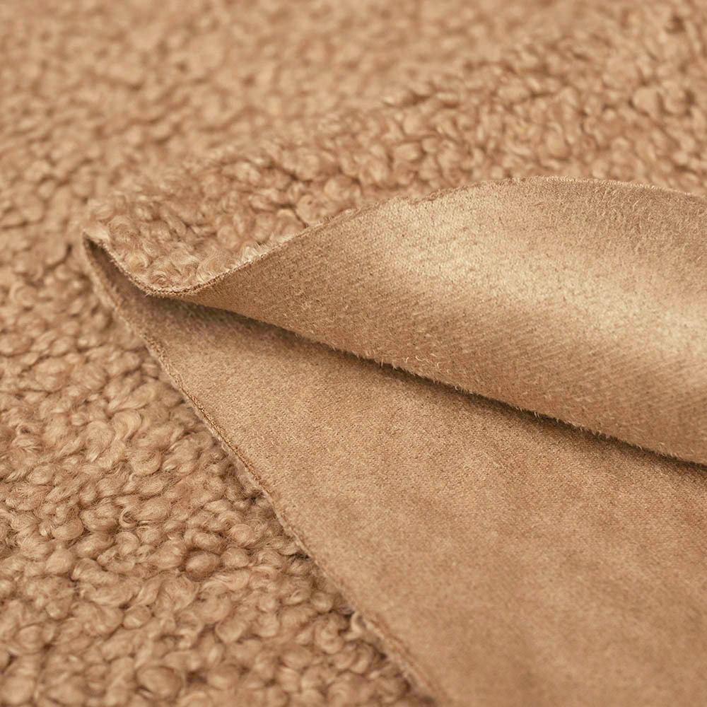 Dzianina płaszczowa Bucle Zamsz to dwustronny materiał idealny na sezon jesienno-zimowy, który z jednej strony wykończony jest miękkim barankiem, a z drugiej eleganckim zamszem.