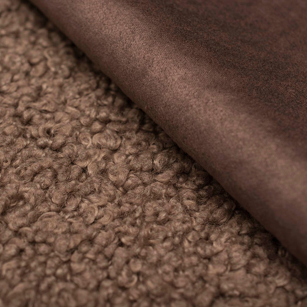 Dzianina płaszczowa Bucle Zamsz to dwustronny materiał idealny na sezon jesienno-zimowy, który z jednej strony wykończony jest miękkim barankiem, a z drugiej eleganckim zamszem.