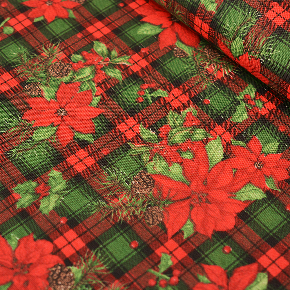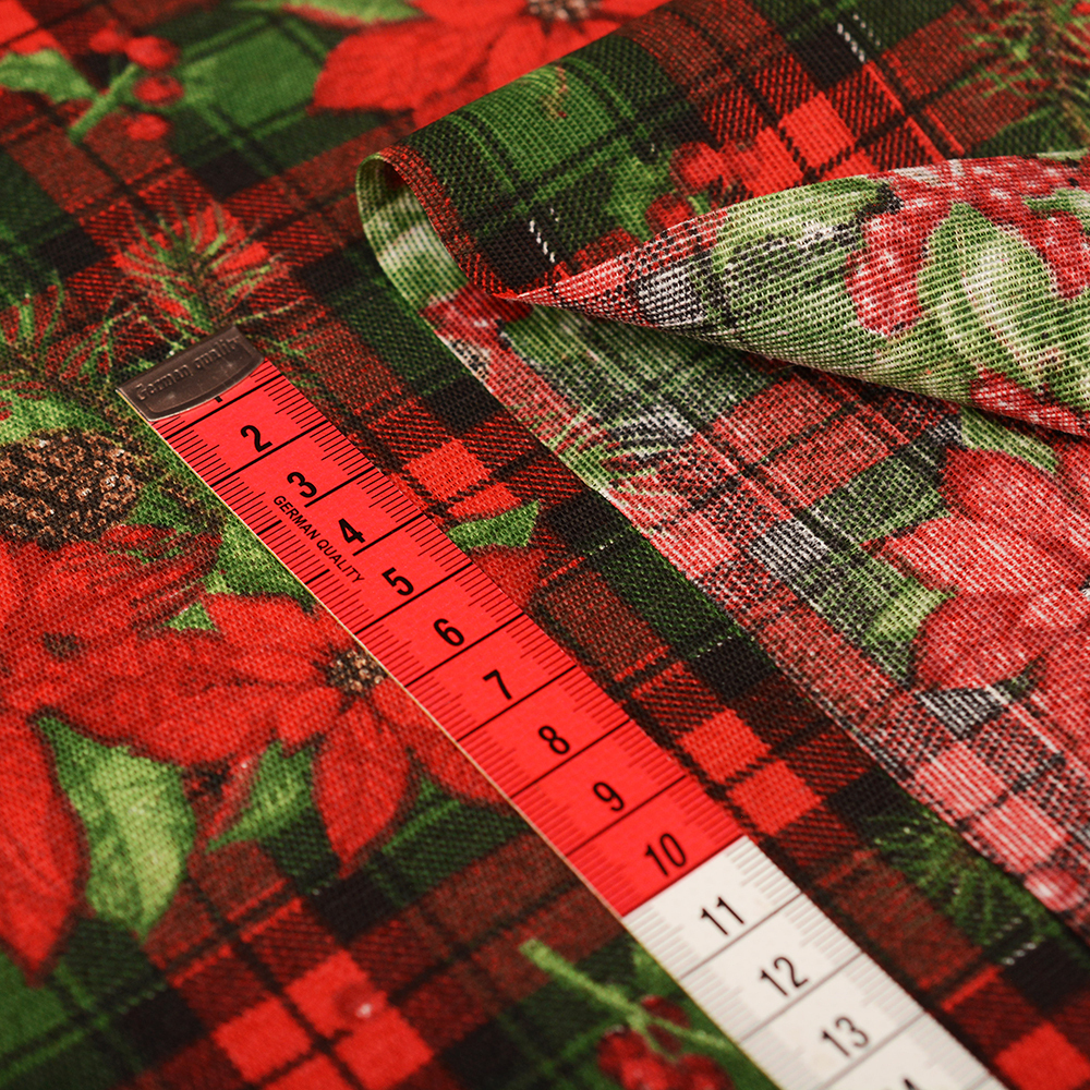 Dekoracyjna tkanina bawełniana o świątecznym wzorze to idealny wybór do tworzenia nastrojowych aranżacji wnętrz.