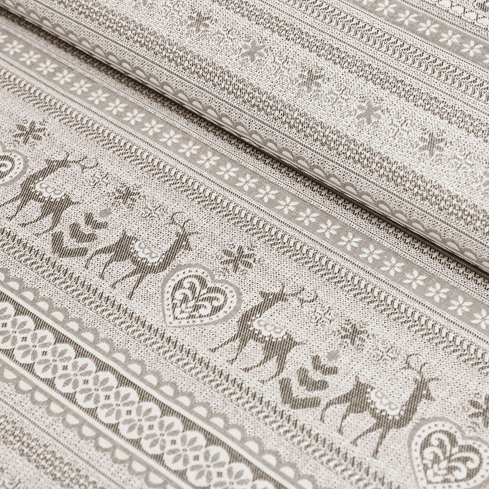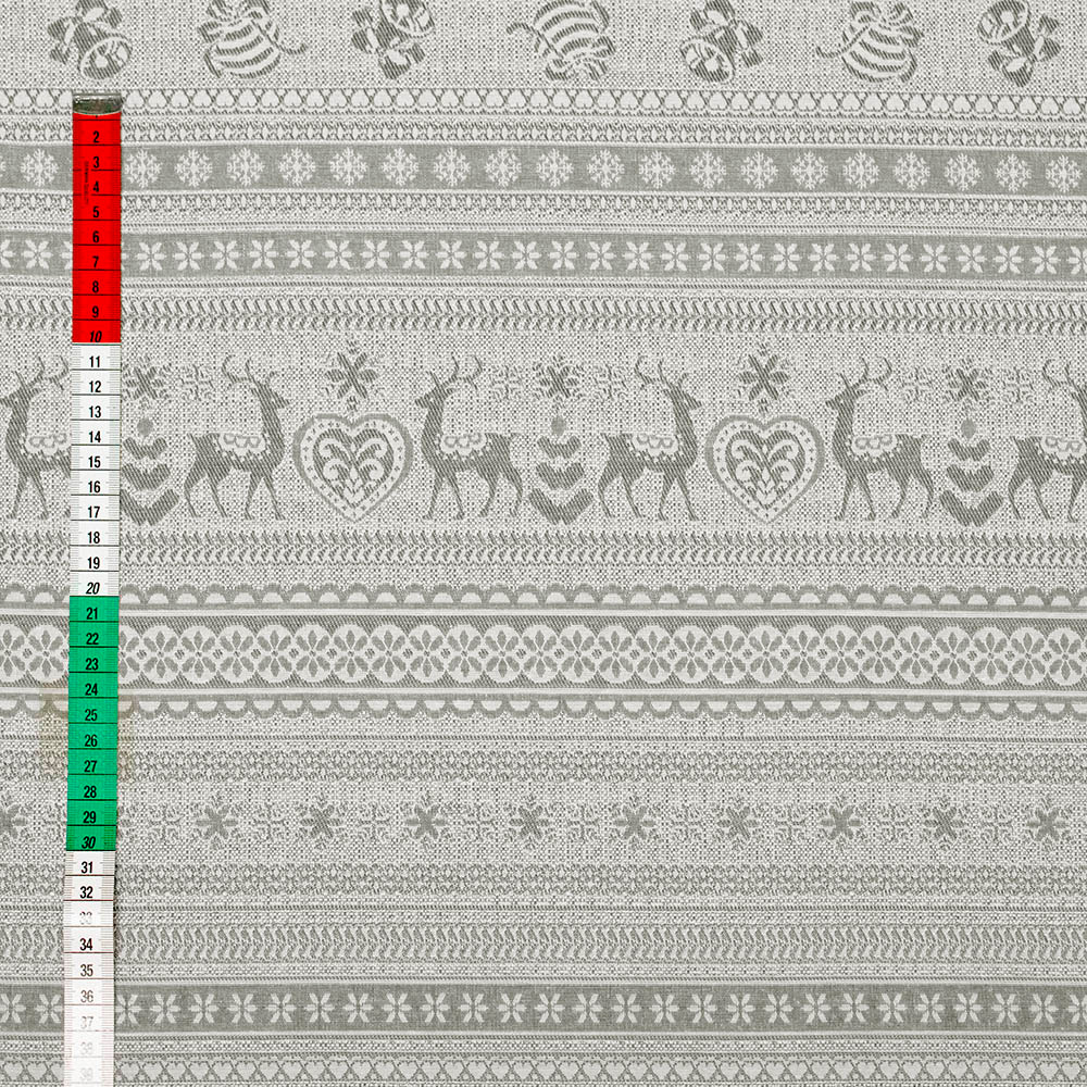 Wzorzysta tkanina dekoracyjna o pięknym, świątecznym deseniu to doskonały wybór do aranżacji wnętrz w okresie zimowym. Wykonana techniką żakardową, charakteryzuje się mocnym splotem oraz przyjemnie miękką fakturą, która dodaje tekstyliom elegancji i komfortu. Dzięki swojej wszechstronności świetnie sprawdzi się jako materiał na ozdobne poduszki, świąteczne obrusy czy bieżniki, wprowadzając do domu ciepły, uroczysty klimat.