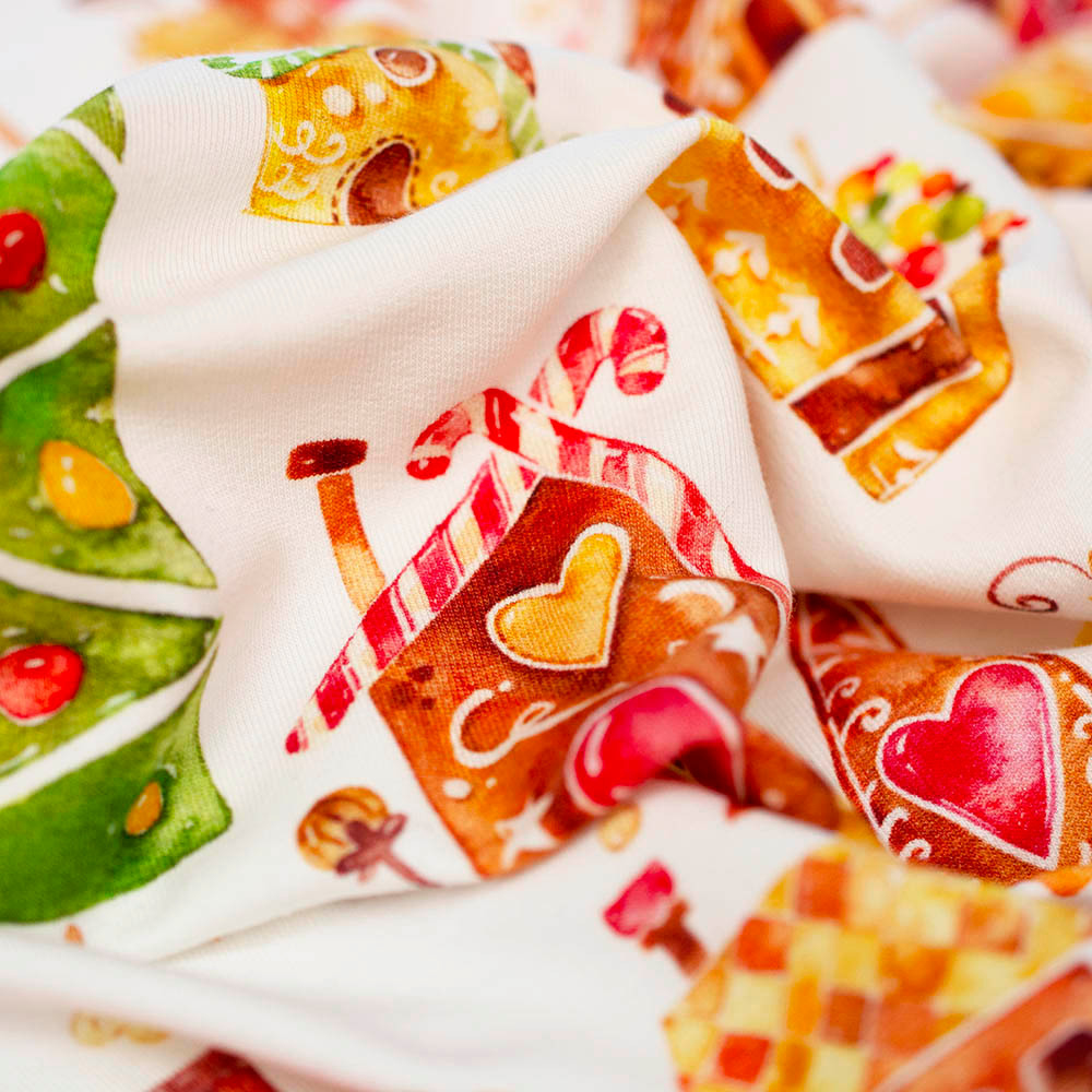 Dzianinę dodatkowo zdobi bardzo modny wzór wykonany za pomocą druku cyfrowego. Ta metoda pozwala na uzyskanie wielokolorowych deseni o trwałych i nasyconych barwach. Druk nie jest wyczuwalny w dotyku oraz nie wpływa na miękkość dzianiny.