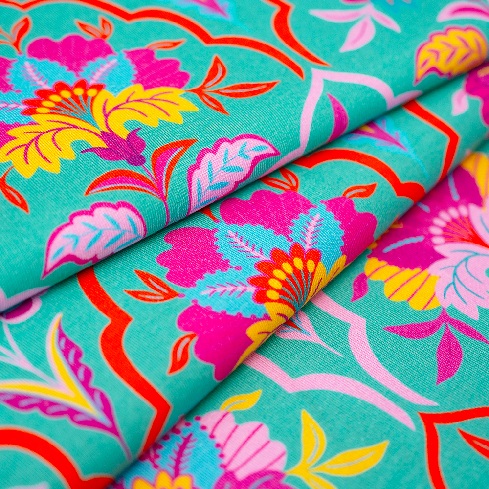 Dzianinę dodatkowo zdobi bardzo modny wzór wykonany za pomocą druku cyfrowego. Ta metoda pozwala na uzyskanie wielokolorowych deseni o trwałych i nasyconych barwach. Druk nie jest wyczuwalny w dotyku oraz nie wpływa na miękkość dzianiny.