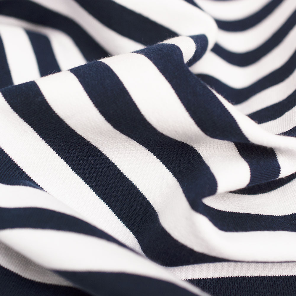 Bawełniana dzianina dresowa o spodzie pętelkowym w bardzo modnym w tym sezonie wzorze w paski.