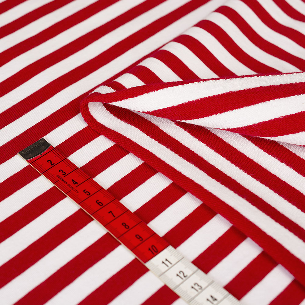 Bawełniana dzianina dresowa o spodzie pętelkowym w bardzo modnym w tym sezonie wzorze w paski.