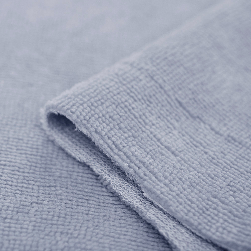 Tkanina Frotte wykonana z mieszanki włókien bawełnianych oraz bambusowych.